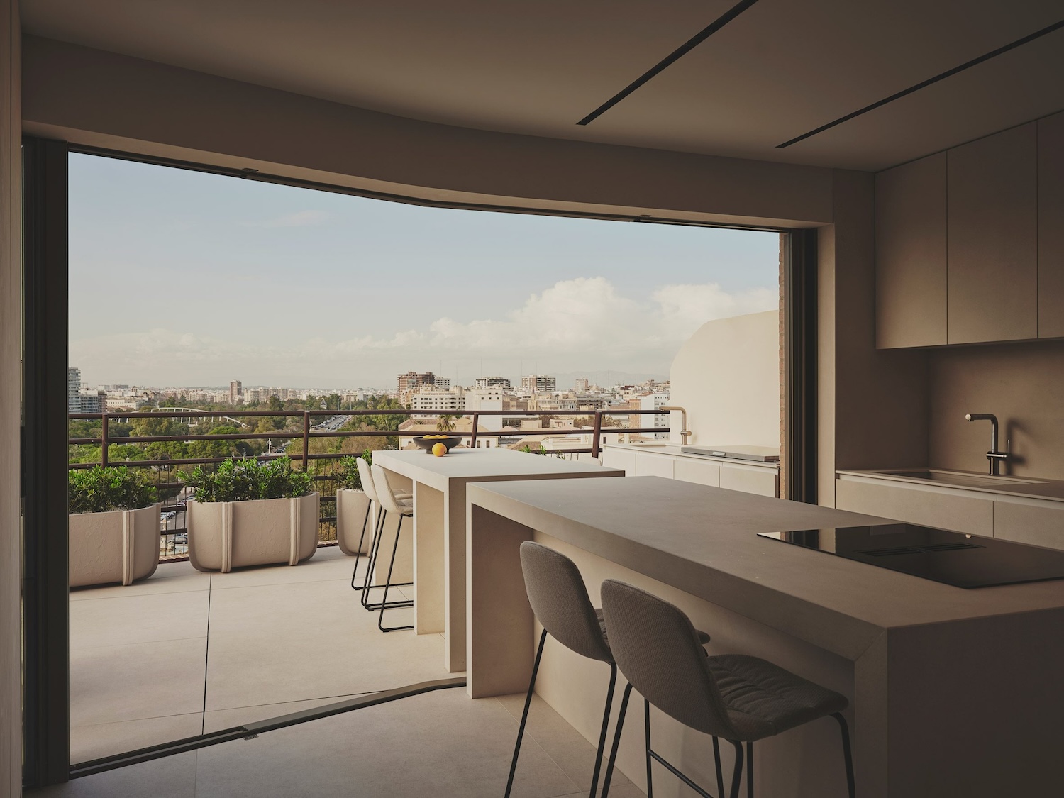La firma española Destudio transforma un ático en Valencia en un oasis minimalista, donde la arquitectura se pliega al paisaje. Con una envolvente curva de vidrio, el espacio captura las vistas de los jardines del Turia, difuminando los límites entre interior y exterior.