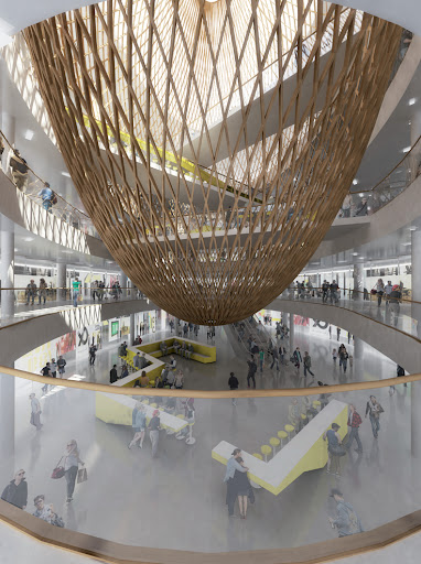 El renombrado estudio de arquitectura francés Agence Search será el responsable del proyecto para un nuevo centro comercial en París bautizado como Beaugrenelle. La estructura de cinco pisos contempla llamativas celosías en madera de carácter elíptico que definirán 2 grandes atrios emplazados a lados opuestos del edificio. Inspirados en el cenotafio conceptual que construyera el arquitecto Étienne-Louis Boullée para Isaac Newton hace más de 200 años, Beaugrenelle incorpora escaleras mecánicas y pasarelas peatonales suspendidas a lo largo y ancho, generando verdaderos vacios en las celosías suspendidas así como un flujo de circulación geométricamente fluido.