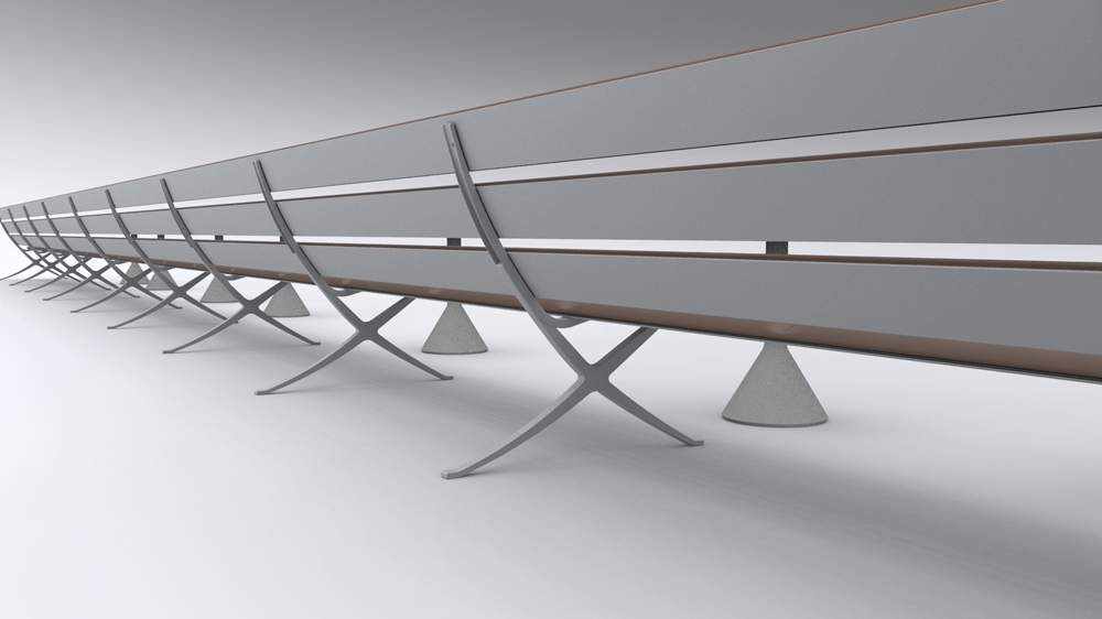 La serie Bench B, presentada en imm Cologne 2013, se incorpora a la colección Extrusions de la firma española BD Barcelona Design. Esta silla del alemán Konstantin Grcic lleva tal nombre puesto que, gracias a su cuerpo de aluminio ensamblable, es posible unirla con otras como ella de modo de crear una banca de hasta seis metros de largo, para uso interior o exterior. El modelo de inspiración de Bench B es la icónica silla Barcelona de Mies Van Der Rohe, convertida esta vez a una versión más económica y tecnológicamente avanzada. Bench B puede disponer de apoya brazos o pasar de ellos, y el aluminio puede ser tapizado o no, volviéndose casi una pieza personalizada.