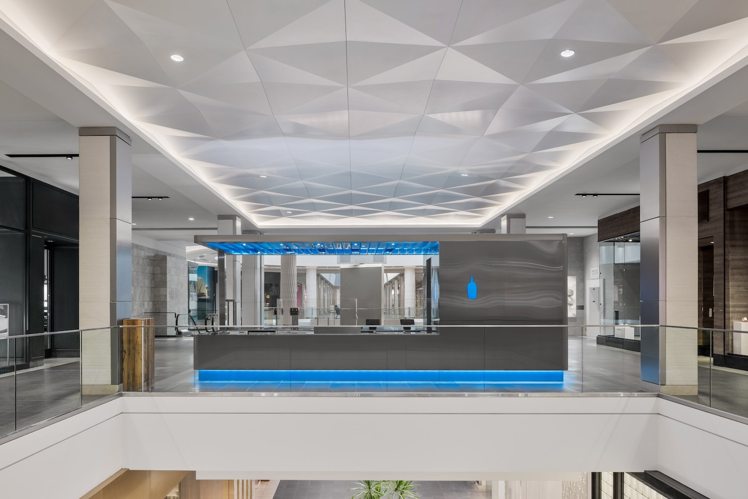 El estudio japonés I IN diseñó el primer quiosco de Blue Bottle Coffee en Santa Clara, California, un proyecto que combina prefabricación, identidad de marca y diseño minimalista. Construido en acero inoxidable modular, el quiosco se ensambló fácilmente en sitio, reduciendo tiempos de obra y desperdicio de materiales, lo que refuerza su carácter sostenible. La estructura refleja el entorno gracias al acero, suavizando su presencia urbana, mientras que el azul característico de la marca aparece en detalles como las persianas superiores, la base iluminada y el logotipo, generando una identidad clara y reconocible desde la distancia. El diseño conjuga lo industrial con lo ligero, creando un espacio compacto que integra mostrador, área de preparación y zona de atención al cliente. Más allá de su escala, el quiosco representa un modelo replicable, con un sistema adaptable que mantiene la consistencia de la marca en diferentes contextos.