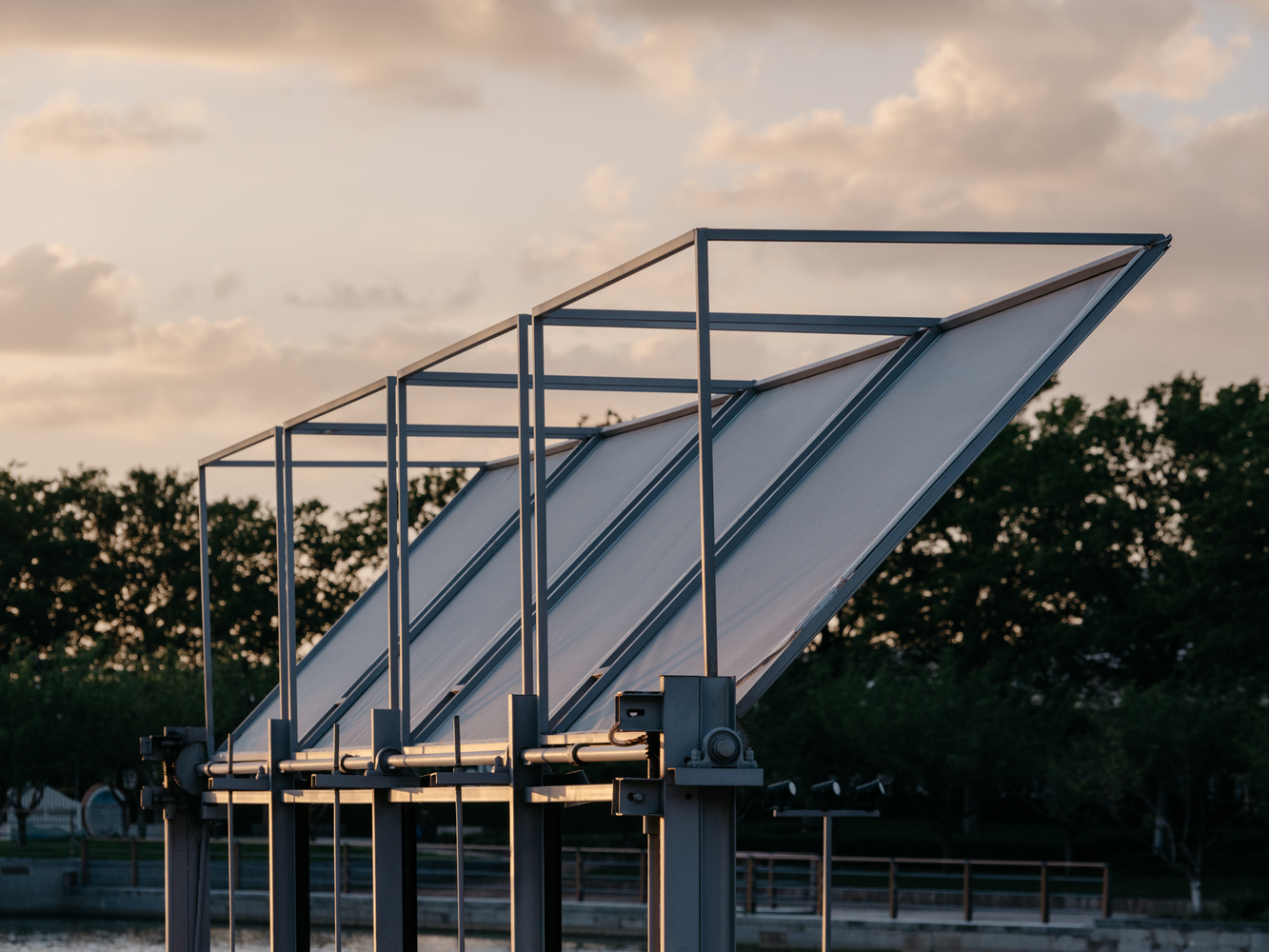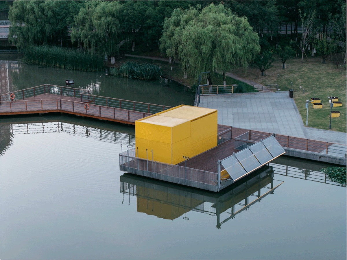 En el Parque Central de Huaqiao, en Kunshan, el Café Caja de Flores transforma un antiguo pabellón olvidado en una pieza de arquitectura ligera y flexible que respira con la ciudad. Diseñado por el estudio chino SoBA como una caja dinámica, sus fachadas deslizantes y plegables permiten que el volumen se abra o se cierre, revelando un interior que se integra con el lago y se adapta al clima, al tiempo y al uso cotidiano.