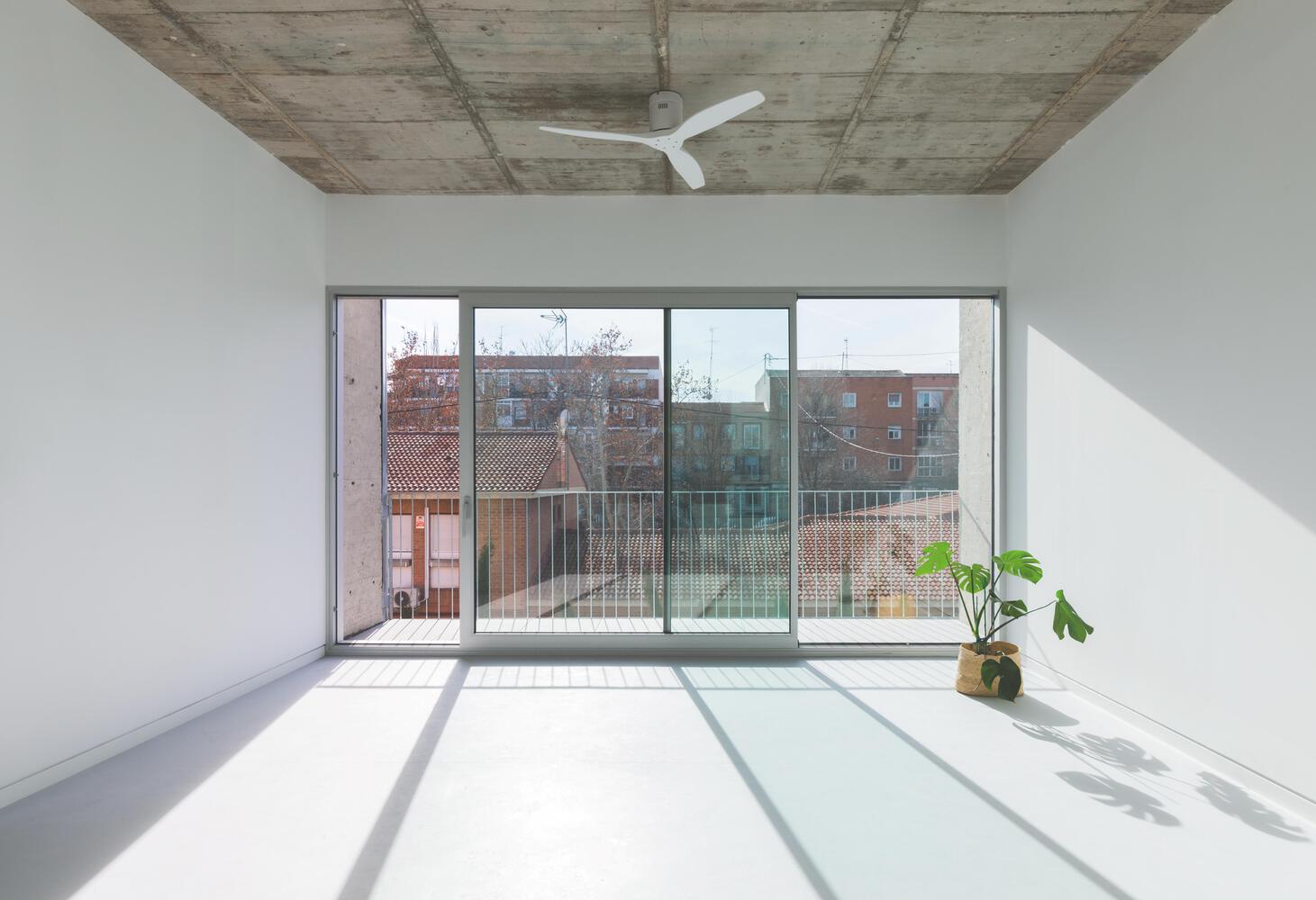 Casa Botijo, ubicada en un barrio de casas bajas y naves industriales del siglo XX en Madrid, España, destaca por su diseño que integra elementos característicos del entorno urbano. Su fachada presenta una celosía cerámica que oculta el núcleo de escaleras, combinando ladrillo, hormigón visto y acero galvanizado. Los techos de 3,20 metros de altura y un gran ventanal orientado hacia el sur proporcionan amplitud y luz natural. La paleta de materiales interiores, que incluye pavimento de linóleo y madera, contrasta con el exterior, aportando calidez. La vivienda garantiza un bajo consumo energético mediante un aislamiento de 10 cm, ventilación natural cruzada, protección solar regulable y un sistema de suelo radiante-refrescante con energía aerotérmica.