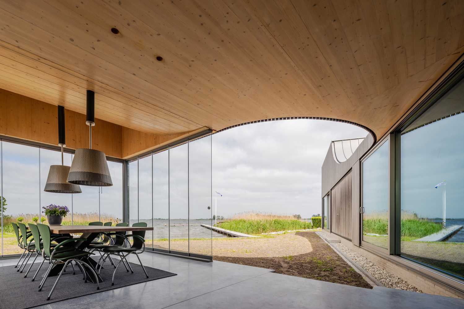 En el norte de los Países Bajos, Casa del Lago o Marhûs, del frisón mar (lago) y hûs (casa), se posa junto al agua como una extensión natural del paisaje. Su arquitectura, concebida por Lichtstad Architecten, celebra la dualidad entre modestia y presencia. Es discreta desde la calle, pero se abre con amplitud frente al horizonte lacustre.
