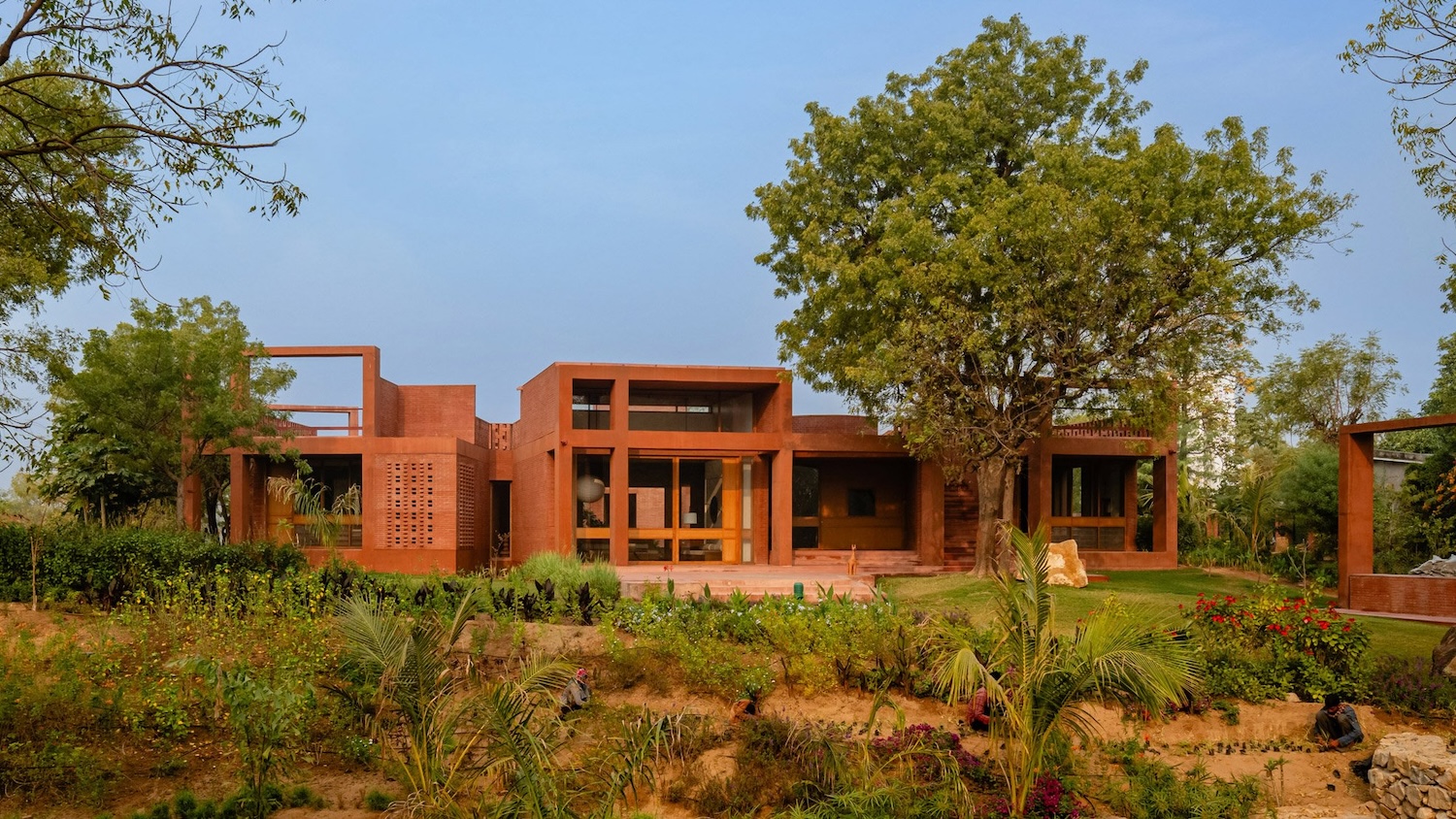 La Casa de Fin de Semana en Alloa, diseñada por la firma india Studio Sangath, se despliega como un refugio íntimo entre formas cúbicas y terrazas que dialogan con el ritmo del sol. En lo alto de un zócalo de hormigón teñido en tonos terrosos, la villa encuentra su equilibrio entre lo natural y lo construido, invitando a la contemplación desde cada rincón.