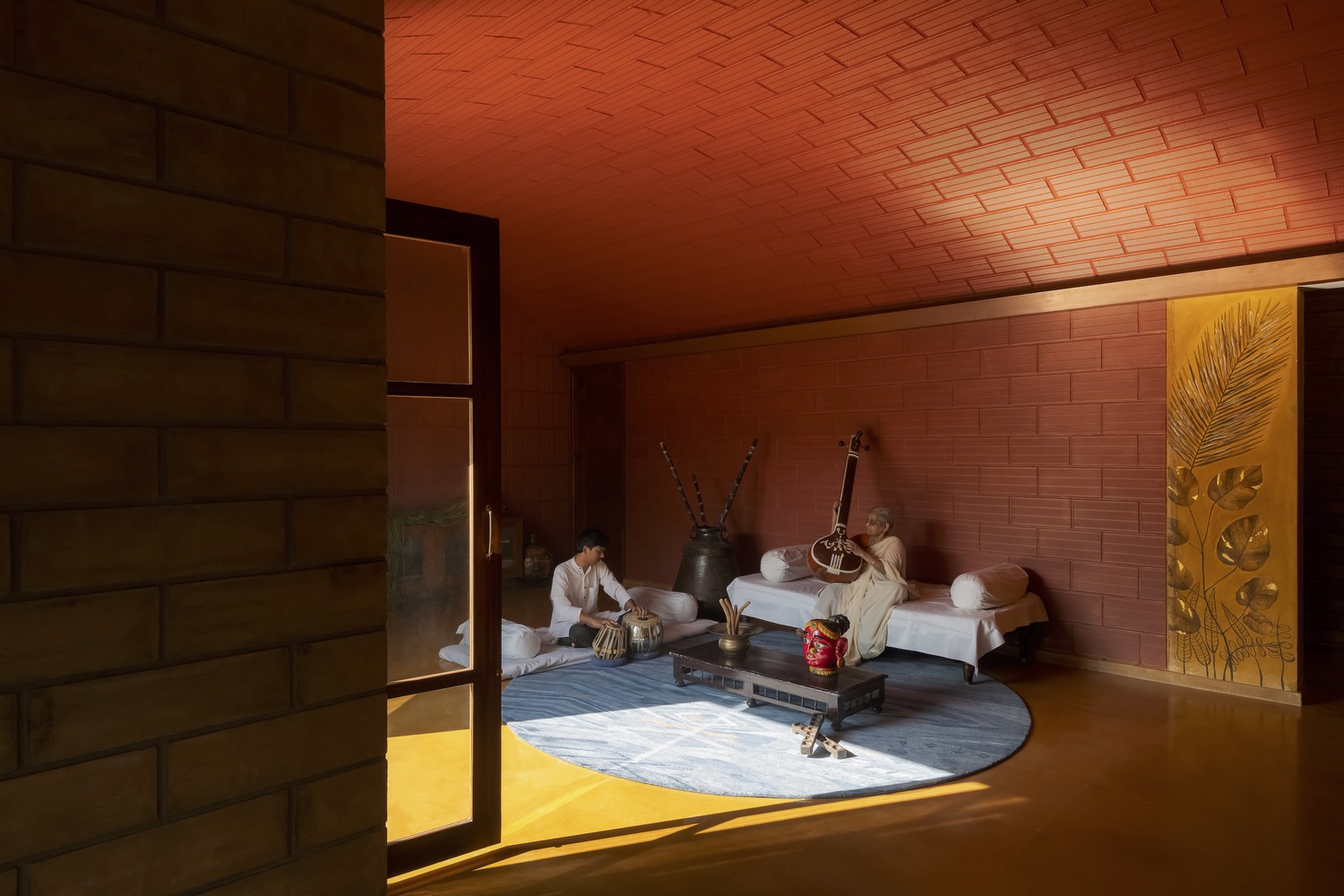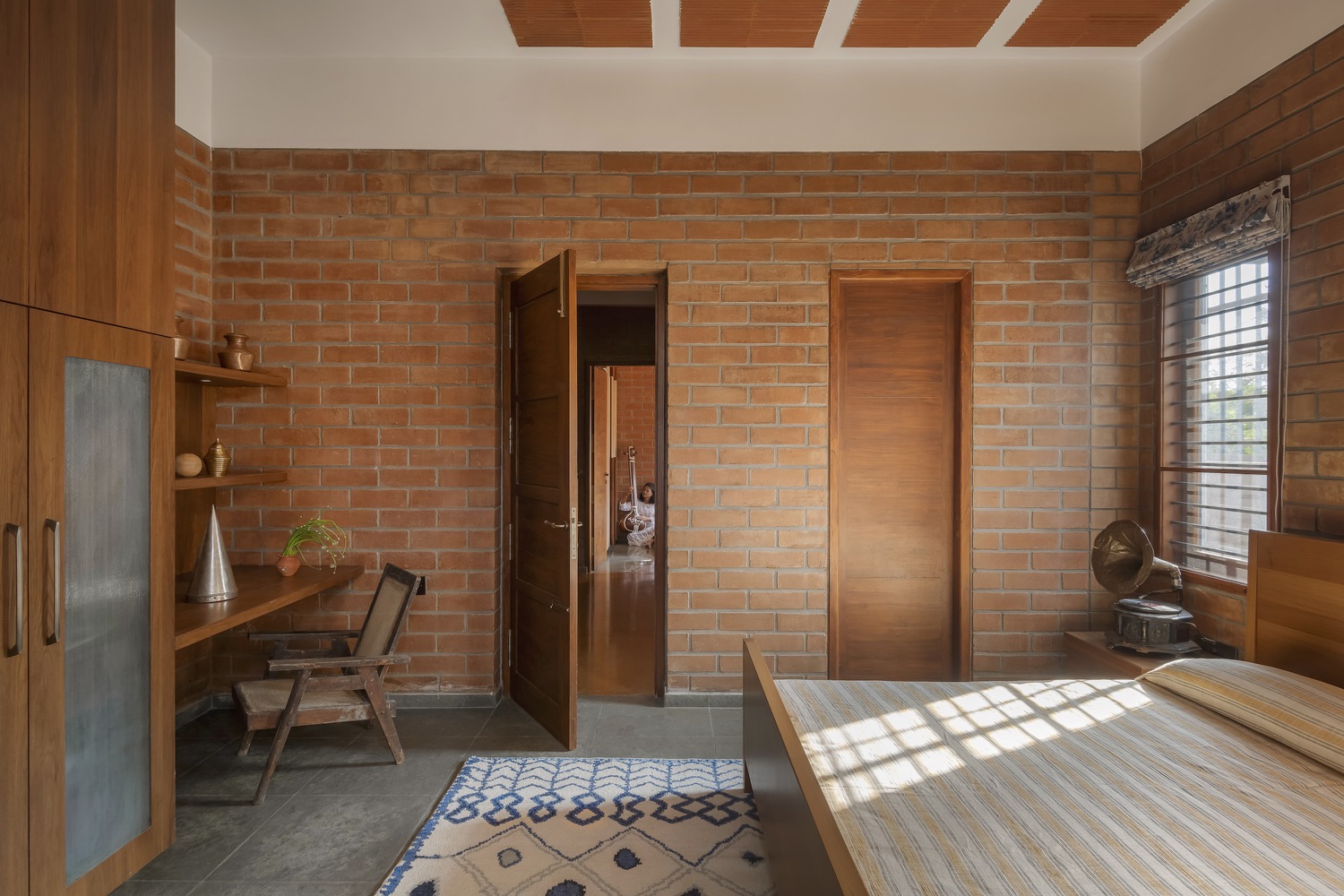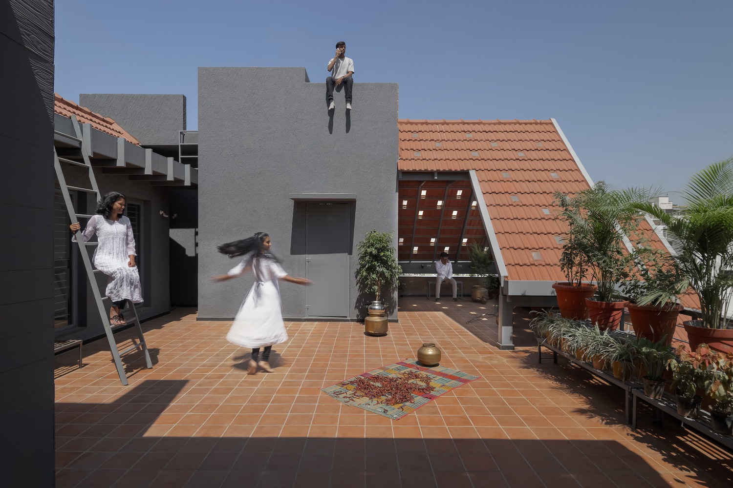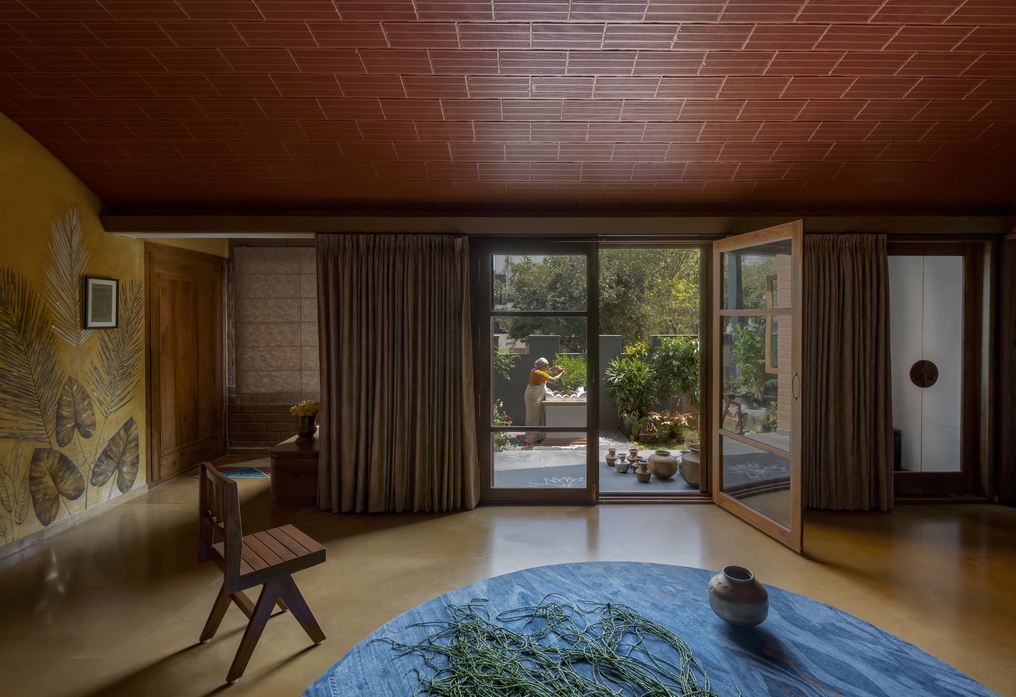 Madhura es una casa que conecta generaciones, diseñada para dos hermanos que buscaban revivir la esencia de su hogar ancestral en Kampli, Karnataka, en medio del vibrante contexto urbano de Bengaluru. Con dos casas apiladas y organizadas según el Vastu Shastra, ofrece privacidad e independencia, pero con espacios comunes que fomentan la convivencia y las reuniones familiares. Construida con materiales sostenibles como barro, piedra y bloques de terracota, la casa recrea el ambiente cálido de las viviendas tradicionales, minimizando la huella de carbono. Los patios y terrazas permiten la conexión constante con la naturaleza, mientras que los juegos de luz y sombra añaden dinamismo. El tercer nivel es un refugio de esparcimiento con una terraza verde, un cine al aire libre y un gimnasio. Por otro lado, las curvas de los arcos y los techos inclinados aportan un diseño vibrante, mientras que los colores terrosos y una pared de óxido amarillo celebran la rica herencia de la familia.