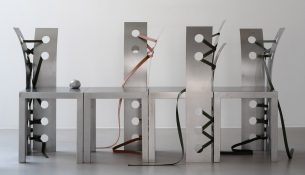 Presentando un juego continuo entre escultura y mobiliario, la exposición Mueble Escultura...