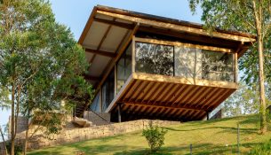 Refugio en la Montaña, diseñado por la firma brasileña VOO®, se posa entre la vegetación d...
