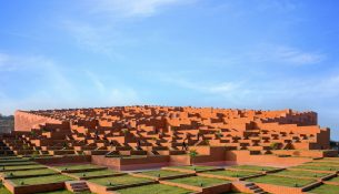 En el campus de trece hectáreas de la Prestige University, en Indore, un edificio académic...