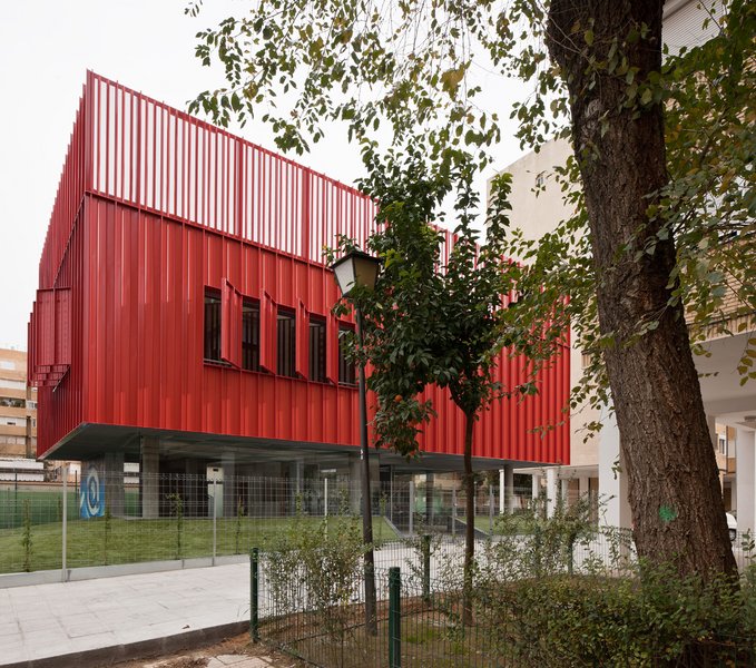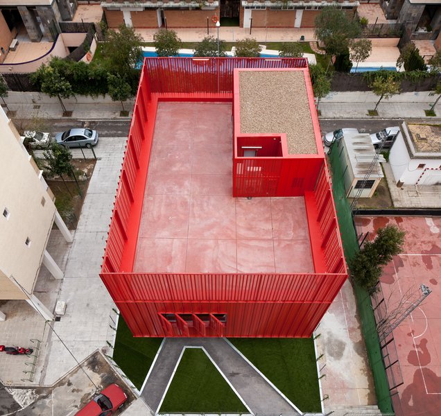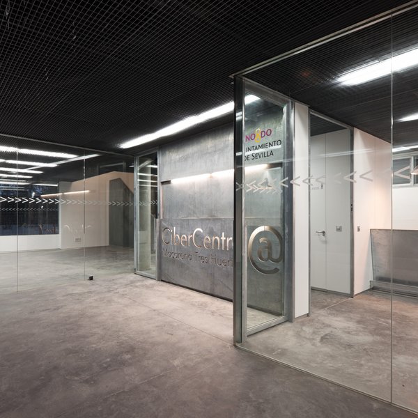 Los arquitectos de Mediomundo diseñaron un centro cívico en la ciudad de Sevilla, que debía ser pensado como lugar público y de encuentro, pero especialmente como espacio de conexión virtual a través de internet. Se decidieron por tanto, en traducir esta conectividad al espacio físico: por dentro el cibercentro es amplio y no cuenta más divisiones que las existentes entre los diferentes pisos, y culmina en una azotea al aire libre que permite visualizar la ciudad; por fuera, grandes vanos reciben al visitante en la parte inferior, y una fachada de chapa roja proteje los pisos superiores, donde se encuentran las salas de computación y talleres.