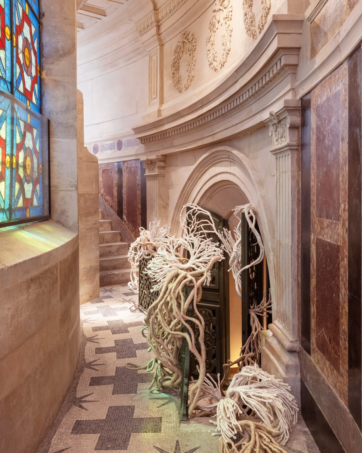 En el marco de la Semana del Diseño de París, la artista francesa Aude Franjou transforma la Columna de Julio con Corales de la Libertad, una instalación que entrelaza memoria histórica y vitalidad orgánica. Tejidas a mano con fibras de lino, docenas de formas coralinas ascienden en espiral por la rotonda interna del monumento de 1835, evocando tanto el agua que alguna vez fluyó bajo la estructura como su significado como símbolo de libertad y renacimiento.