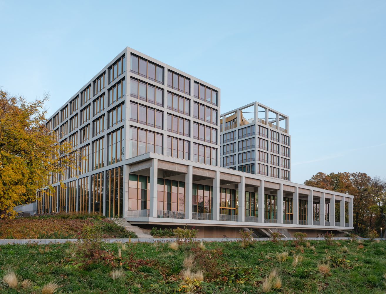 La Universidad Corvinus ha logrado convertir una estructura heredada en un símbolo de progreso educativo y sostenibilidad. El reciclaje de la antigua Facultad de Administración del Estado, ubicada en la ladera de Gellért Hill, resultó en un edificio que preserva su carácter original mientras redefine los estándares de diseño universitario. Diseñado por PLANTA – Atelier Peter Kis, el proyecto combina elementos históricos con una visión contemporánea, creando espacios colaborativos que encarnan la misión de la universidad: ser un hogar educativo que trascienda las aulas tradicionales. La entrada principal, reconfigurada como un ágora moderna, invita a estudiantes y visitantes a una experiencia dinámica donde la escultura Cinco cubos simboliza la apertura y adaptabilidad del conocimiento. El edificio cuenta con dos torres, «J» (Futuro) y «K» (Comunidad), que reflejan el equilibrio entre aprendizaje y vida estudiantil. La torre «J» aloja espacios educativos innovadores, mientras que la torre «K» combina dormitorios pintorescos con áreas comunes diseñadas para la convivencia y el ocio. Un «nivel de corona» con fachada dorada en la torre «K» alberga un café en la azotea y apartamentos para profesores, ofreciendo vistas panorámicas y un espacio versátil para eventos.