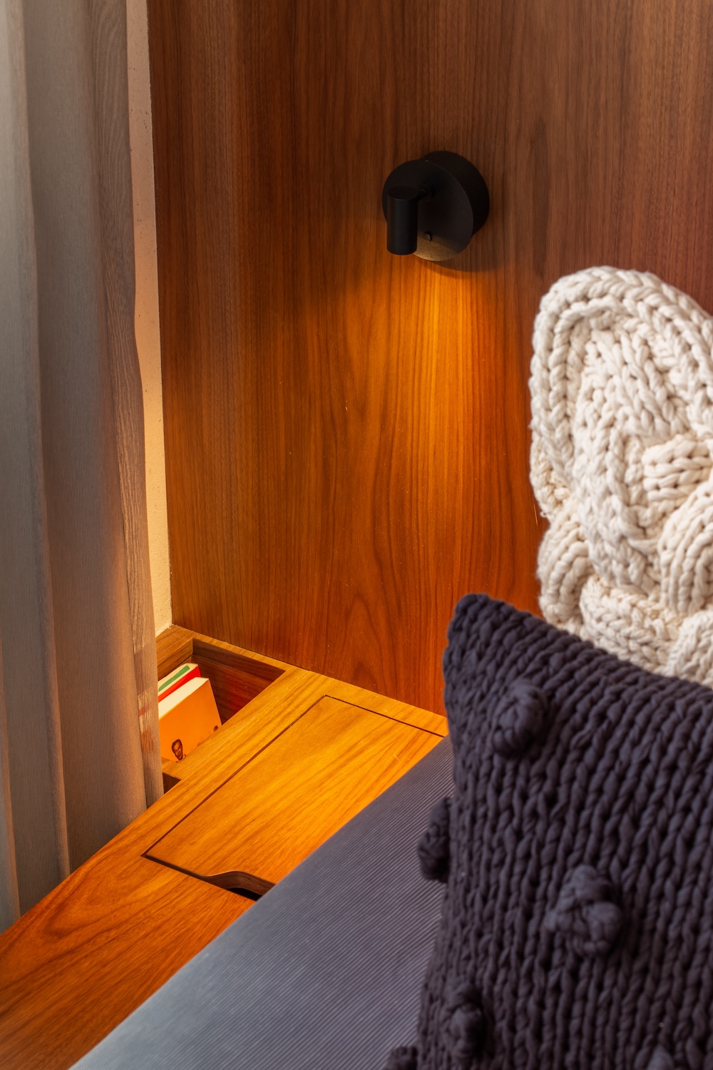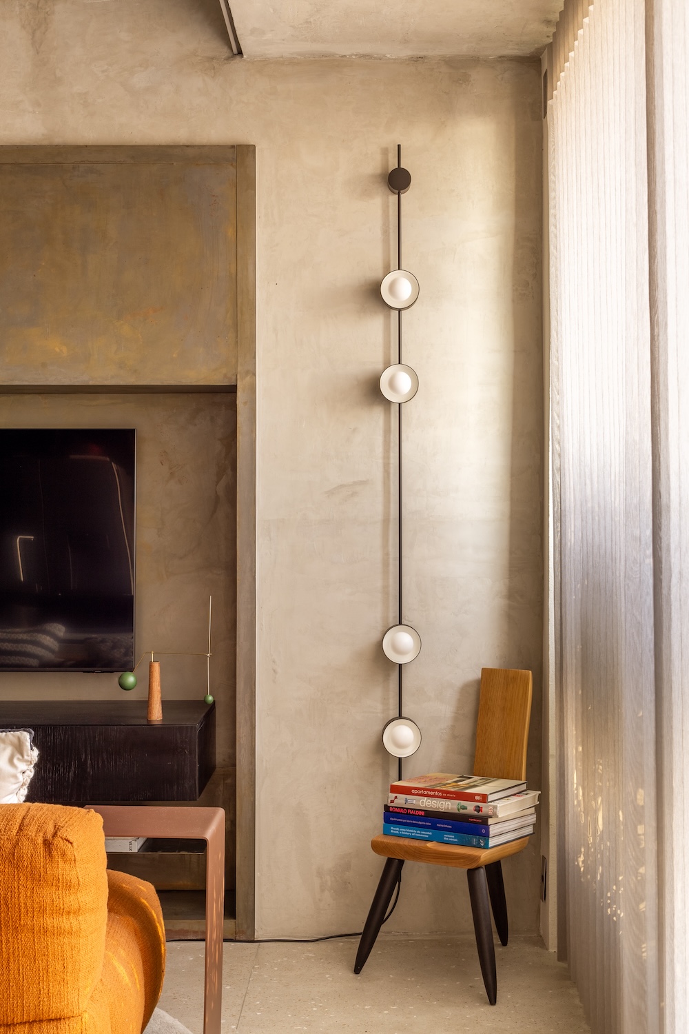 El resultado es un departamento compacto, pero vibrante. El hormigón no solo organiza; también transmite una cierta emoción serena, hecha de proporciones, sombras y decisiones justas.