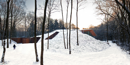 La firma holandesa denieuwegeneratie creó Dutch Mountain —Montaña holandesa— una casa ubicada en una reserva natural de dicho país. Recubierta con madera, y enterrada en un montículo hecho especialmente para ella, la casa mantiene una temperatura agradable todo el año, mientras que los enormes ventanales dejan entrar la luz y el calor solar. Desde la parte norte —por atrás— es imposible verla, haciendo que el impacto de la vivienda se mantenga al mínimo, uno de los requerimientos que tuvo el usuario. Consecuente con la innovación del exterior, el diseño interior es precisamente una mezcla de naturaleza y modernidad urbana. Un Jaguar colgado en la pared sirve de librería y estantería; una claraboya redonda y enorme permite acceder al paisaje sin salir de la casa; en los techos, pequeñas lámparas cuelgan de vigas metálicas; y los peldaños de la escalera recuerdan la forma de una patineta. Los espacios habitacionales están vinculados entre sí, casi sin delimitaciones, lo que permite a los habitantes moldear la casa a medida que sea requerido.