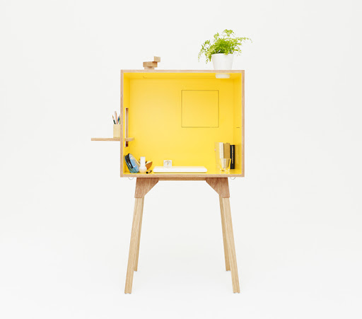 El dúo de diseñadores japoneses Torafu Architects, nos presenta este innovador escritorio para Ichiro Design. Basándose en las casas de muñecas, Koloro utiliza la profundidad como su ángulo más importante. Es lo suficientemente amplio como para acomodar un computador, materiales de estudio, libros, y marcos de foto, si se desea. A los lados, el escritorio cuenta con repisas movedizas, que sirven como posavasos o sujeta lápices. Contrarrestando cualquier falta de luz que pueda surgir de la estructura cúbica de Koloro, una lámpara puede ser colgada desde la repisa superior, creando dentro del cubo un ambiente de trabajo individual en miniatura.