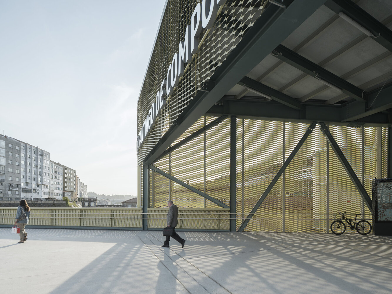 La nueva Estación de Alta Velocidad de Santiago de Compostela, diseñada por Estudio Herreros, no se limita a ser una infraestructura ferroviaria. Se concibe como un proyecto urbano que recompone la relación entre el centro histórico y los barrios del sur, tradicionalmente separados por la trinchera ferroviaria. Integrada en la amplia pasarela peatonal inaugurada en 2011, la estación conecta de manera fluida la red de transporte con los parques del Sar y la Ciudad de la Cultura, ofreciendo un acceso intuitivo y accesible.