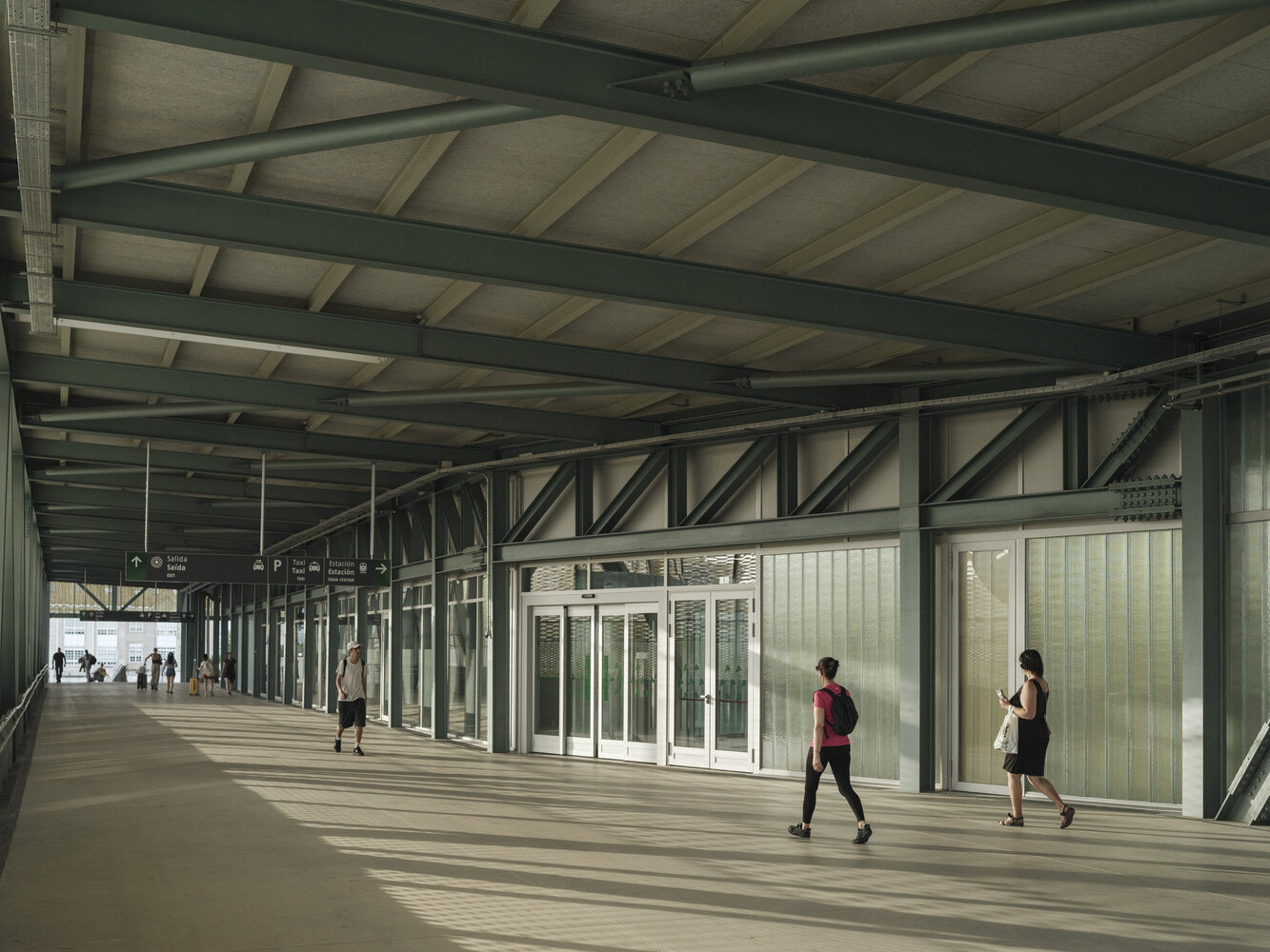 La simplicidad del esquema dialoga con la antigua estación, respetando su marquesina histórica y sumando un lenguaje contemporáneo. Construida con sistemas industrializados y materiales como vidrio estructural, paneles metálicos y cubiertas de zinc, combina ligereza, eficiencia y transparencia.