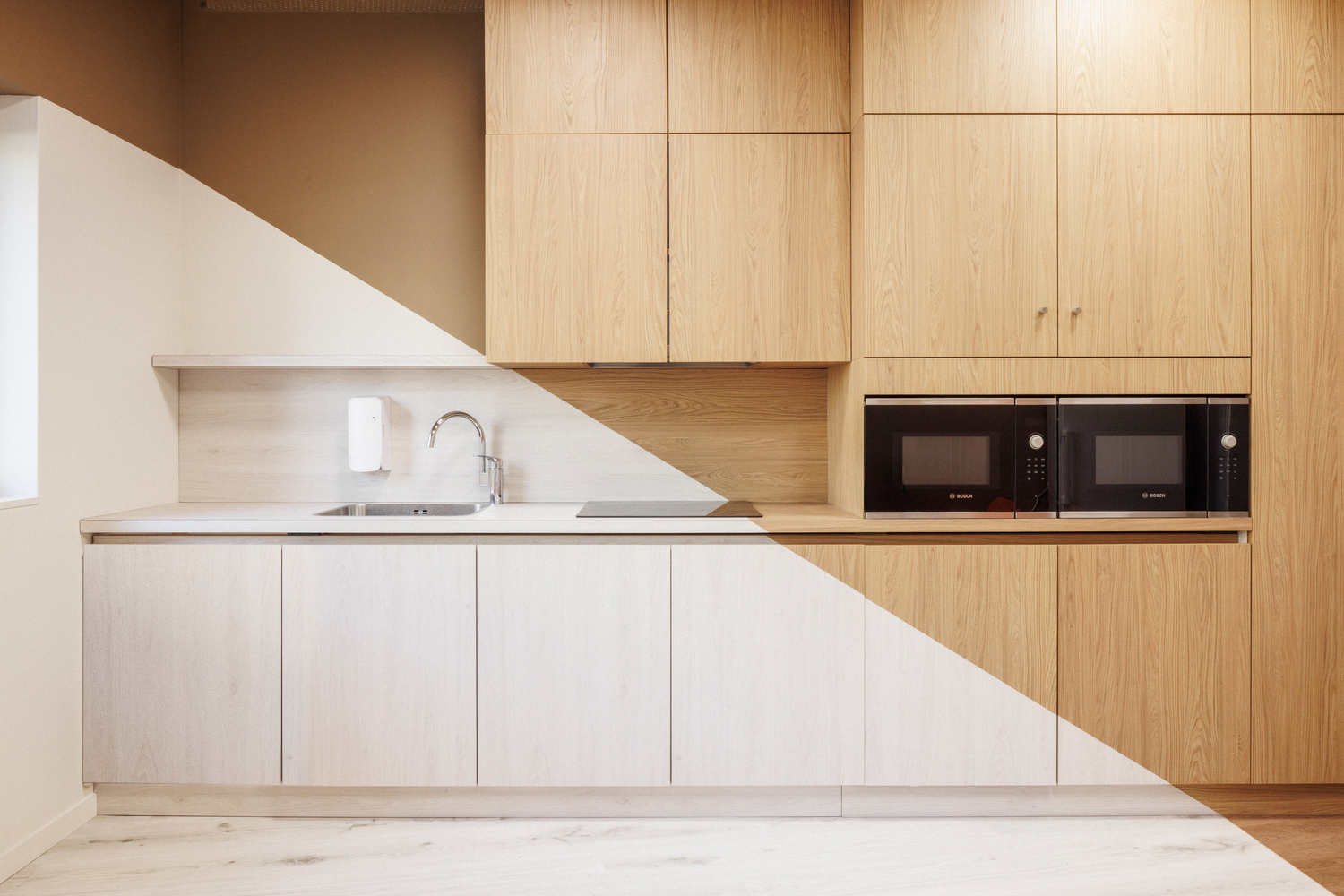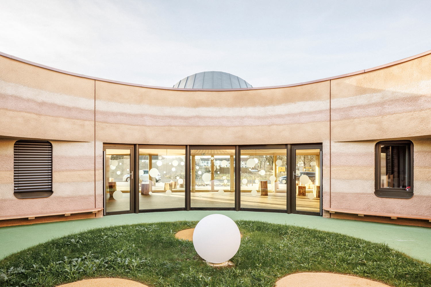 Implantado en un antiguo terreno militar, donde la ciudad parece desvanecerse, este equipamiento educativo se concibe desde la libertad y la restricción simultáneas: un paisaje abierto sin referencias inmediatas y un lote acotado frente a un programa exigente. La respuesta arquitectónica se articula desde la racionalidad, dando forma a un edificio compacto que prioriza la eficiencia espacial y la claridad organizativa. El proyecto adopta un principio de hiperfuncionalidad, eliminando prácticamente los pasillos y organizando los espacios mediante una lógica radial. Las salas principales se rodean de recintos auxiliares dispuestos como pétalos, generando continuidad visual y proximidad funcional. En el centro, un espacio común articula la vida colectiva, mientras cada acceso lateral identifica grupos etarios específicos. Esta configuración no solo optimiza el uso del espacio, sino que fomenta la interacción y permite una supervisión constante, convirtiendo la arquitectura en una herramienta pedagógica en sí misma. Hacia el exterior, el edificio se presenta como un volumen pétreo, casi geológico, que emerge del suelo. Sus fachadas, concebidas como estratos minerales, envuelven y protegen los patios interiores, generando un contraste entre la dureza exterior y la calidez del interior. Esta dualidad —refugio y apertura— define una arquitectura que, más allá de su función, construye un entorno seguro, continuo y profundamente ligado a la experiencia colectiva de habitar.