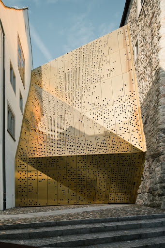 La firma suiza :mlzd fue la encargada de esta nueva extensión del museo municipal del Patrimonio de Rapperswil-Jona, Suiza. Instalada entre las dos edificaciones anteriores, la superficie plegada de color dorado de Janus, le da un nuevo giro a la estética del lugar, destacándose entre los adoquines de las calles y la arquitectura medieval del edificio principal. Por dentro, lo mismo se repite: el blanco practicamente desnudo, el aluminio de las puertas, y los vidrios de las escaleras en esta sección del museo contrastan con los ladrillos expuestos, pilares y puertas de madera de las secciones antiguas. La extensión sirve como galería de exposición y puente comunicacional entre las dos torres existentes, contando con pasillos en alto que la cruzan lado a lado. Una de las ideas principales tras esta disonancia arquitectónica fue la de aunar el patrimonio milenario del país con las creaciones actuales, el patrimonio del futuro.