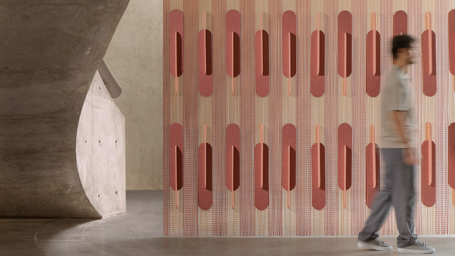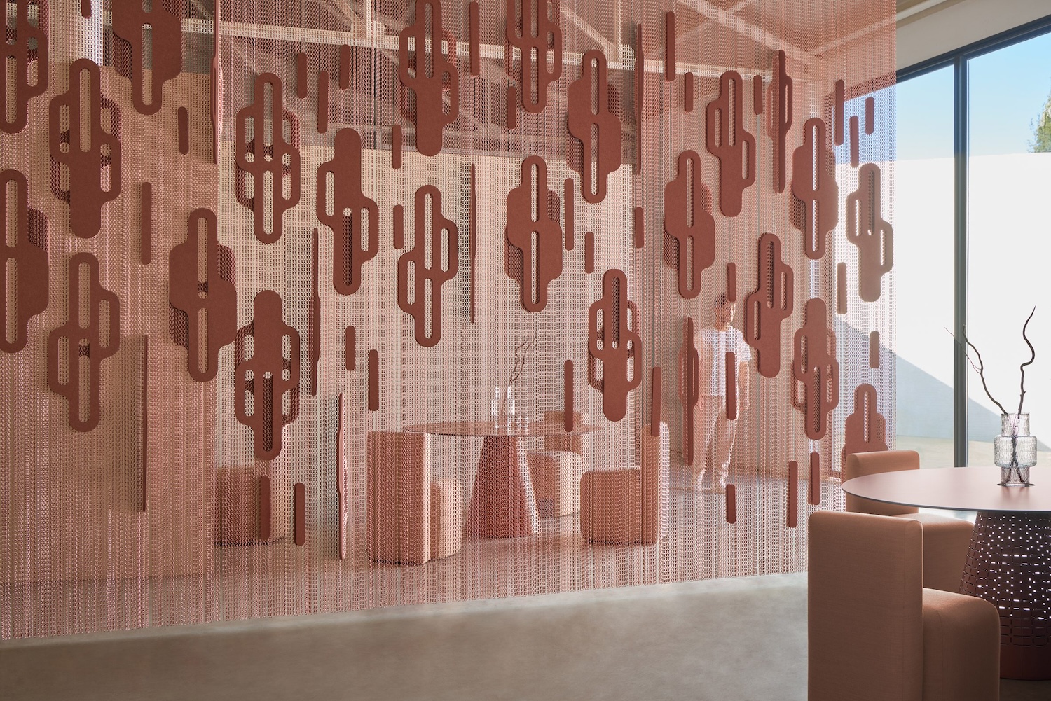 El diseñador español Rafa Ortega y Kriskadecor presentan Khronos, un sistema de separadores de ambientes que combina las icónicas cadenas de aluminio de la firma con componentes de PET reciclado. El resultado es una propuesta que une diseño decorativo y rendimiento acústico, generando espacios más confortables y expresivos.
