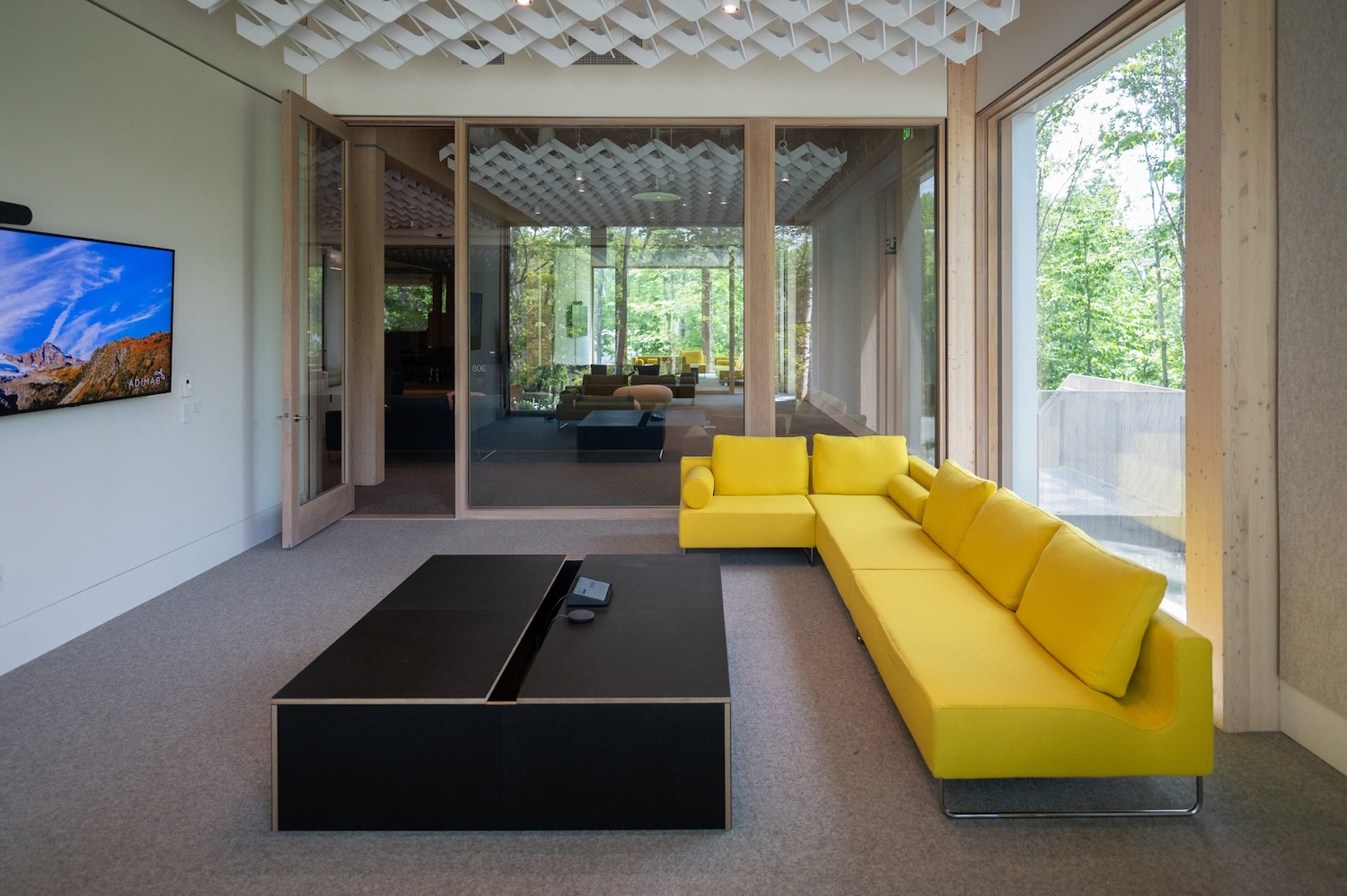 La fachada, revestida en aluminio a medida, oscila entre una estética industrial y una reinterpretación abstracta del lenguaje vernáculo local. En el interior, la madera contrachapada de abedul domina el ambiente, generando un telón de fondo cálido y neutro para una colección que incluye piezas de Schindler, Meier y Noguchi.