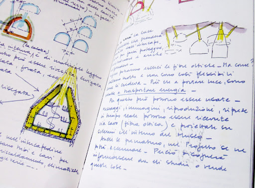 Las libretas Moleskine nacieron en 1997 a manera de tributo a las libretas utilizadas durante los siglos XIX y XX por grandes creadores; Van Gogh, Wilde, Ezra Pound, Matisse, se hallan dentro de los que anotaron, dibujaron, y pasearon con estos cuadernos de tapa negra. Recientemente, la marca italiana decidió expandirse hacia la creación de objetos culturales o relacionados con la cultura, sobre todo a la literatura, pintura y arquitectura. Enmarcada en este nuevo proyecto, nace la colección de ‘libretas de arquitectura’. Estos libros monográficos —dedicados a figuras como Zaha Hadid, Bolles+Wilson, Alberto Kalach, y Giancarlo di Carlo— tienen como objeto mostrar el proceso y estilo creativo del arquitecto. Desde los borradores iniciales y primeros estudios de perspectiva, estos cuadernos documentan la gestación y el pulido de las ideas, a través de los cuales es fácil observar el proceso interno que realizaron los arquitectos.