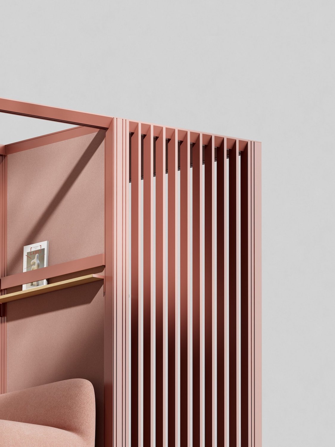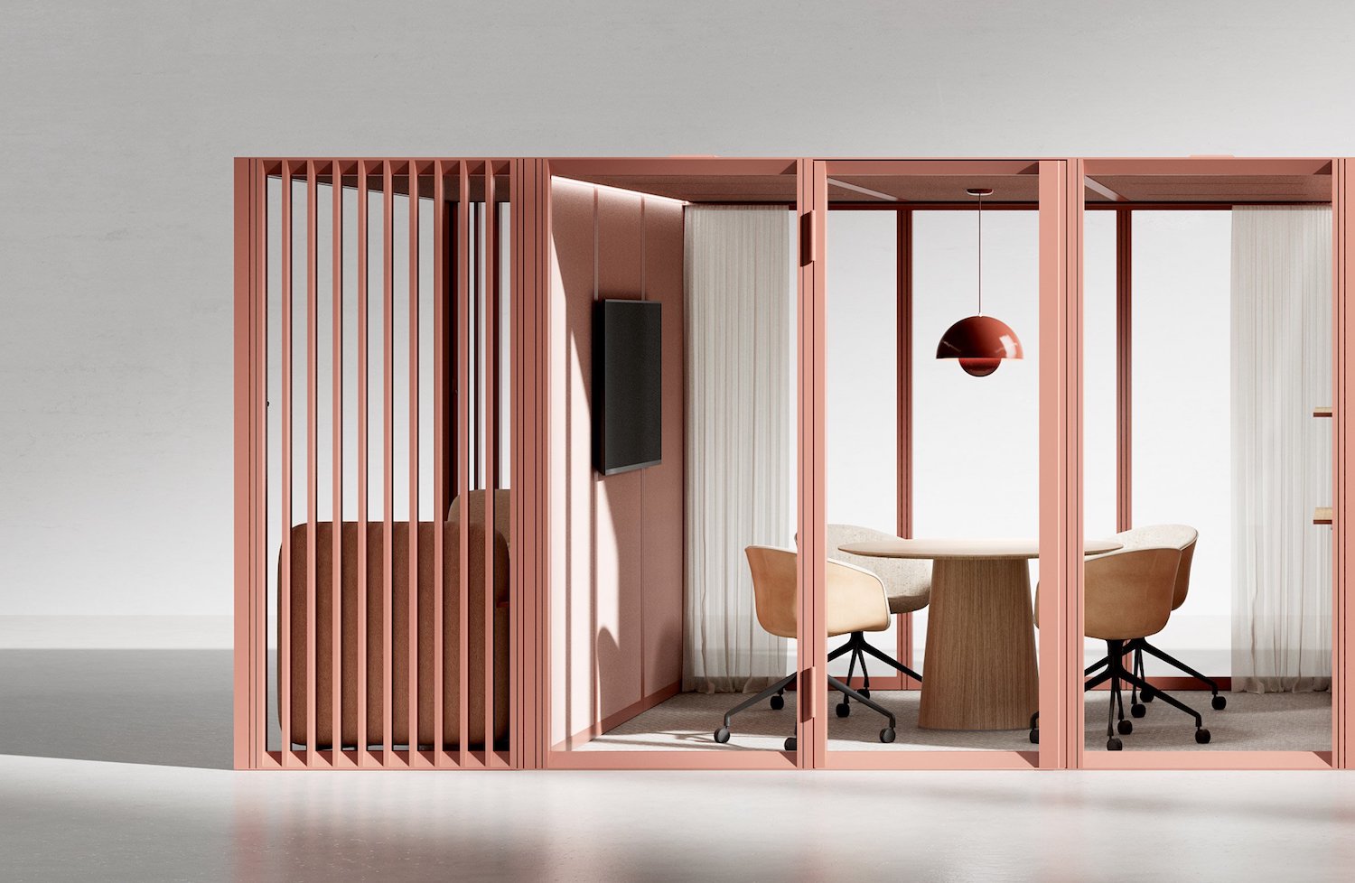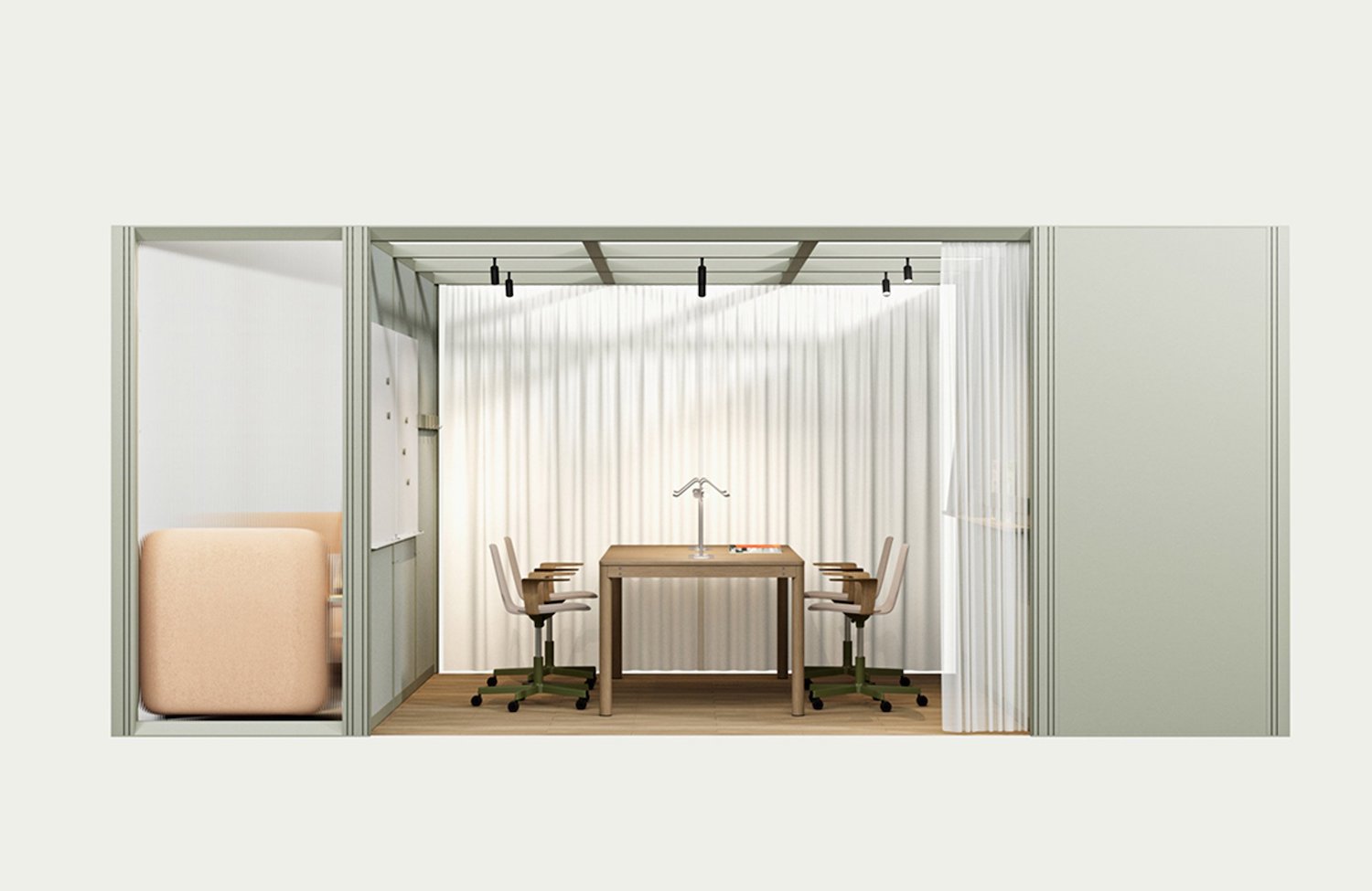 OmniRoom es un espacio de trabajo adaptable con un sistema de configuración modular desarrollado por la empresa polaca especializada en mobiliario de oficina Mute. Este proyecto ofrece cien ambientes dentro de su gama de opciones, entre las que destacan salas de estar, estaciones de trabajo, puntos de café y salas de conferencias. Cada una de las alternativas presentadas cuentan con marcos y paredes de aluminio pintado y cien por ciento reciclado. Por otra parte, la propuesta también permite a los usuarios crear propias configuraciones a través de la combinación de trece módulos prefabricados.