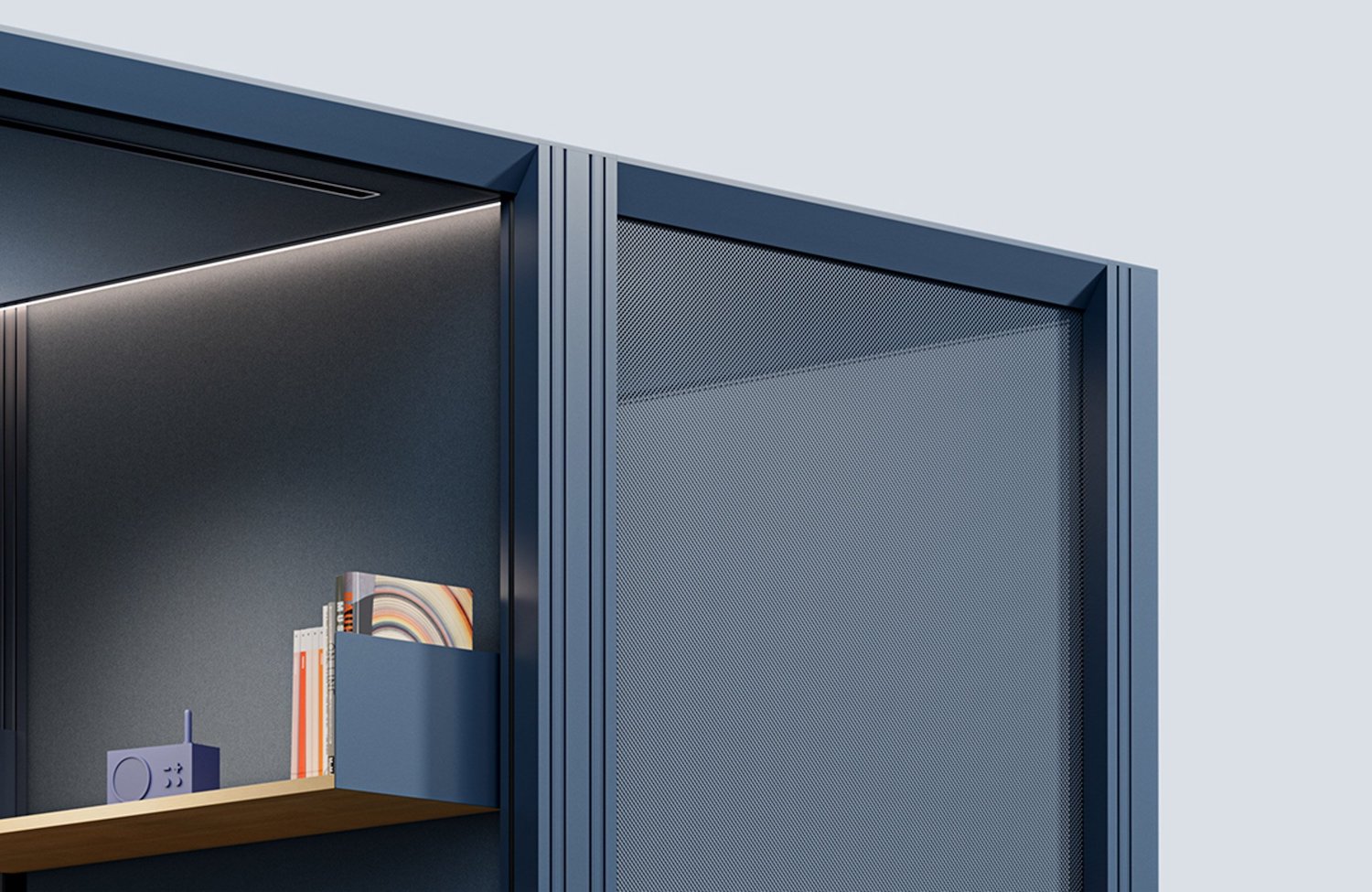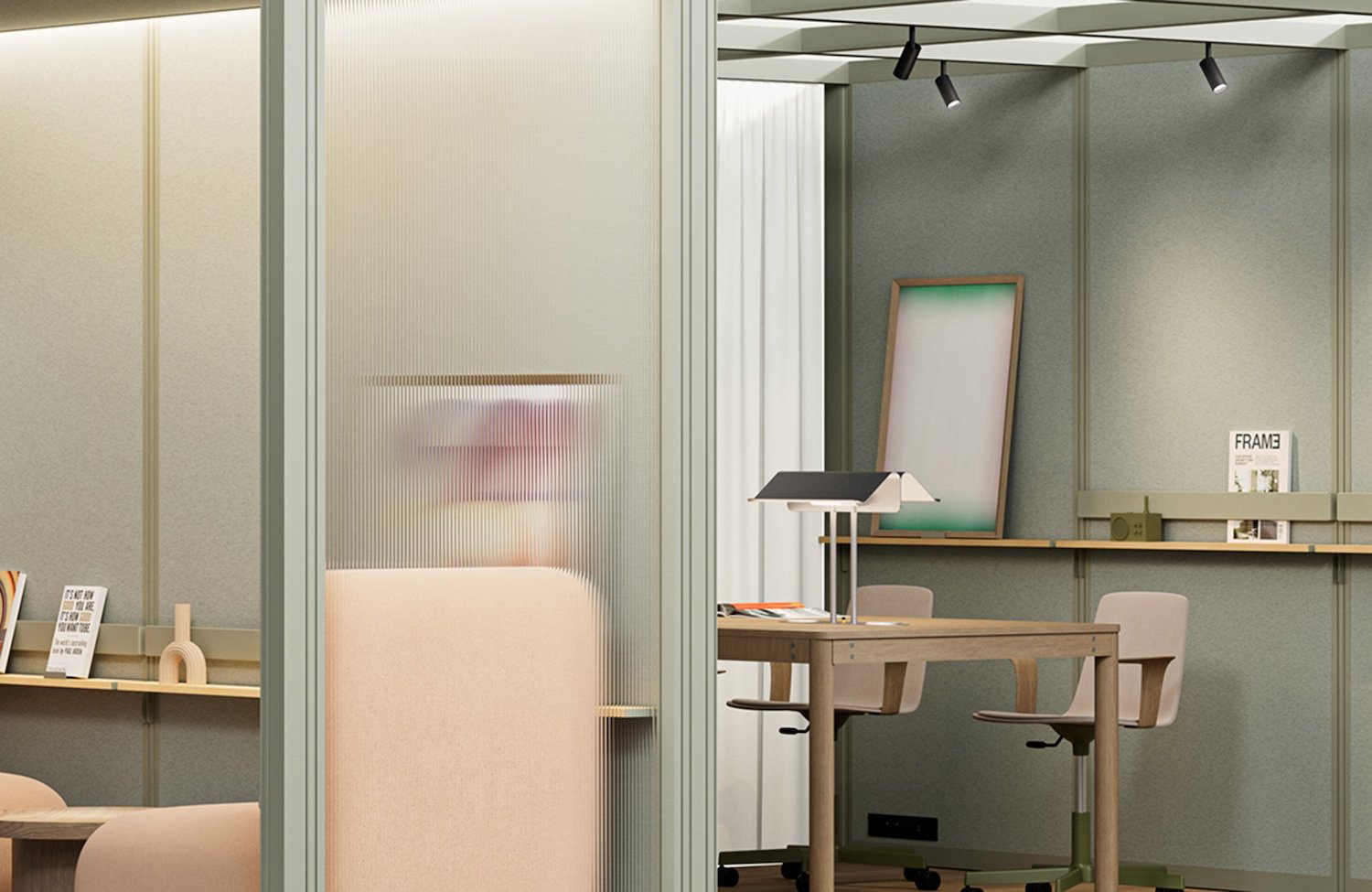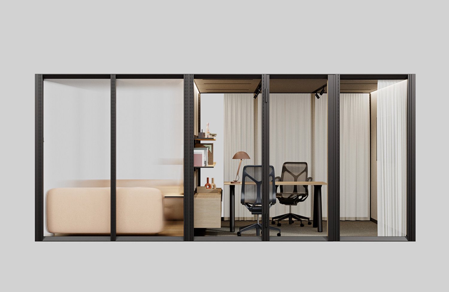 OmniRoom es un espacio de trabajo adaptable con un sistema de configuración modular desarrollado por la empresa polaca especializada en mobiliario de oficina Mute. Este proyecto ofrece cien ambientes dentro de su gama de opciones, entre las que destacan salas de estar, estaciones de trabajo, puntos de café y salas de conferencias. Cada una de las alternativas presentadas cuentan con marcos y paredes de aluminio pintado y cien por ciento reciclado. Por otra parte, la propuesta también permite a los usuarios crear propias configuraciones a través de la combinación de trece módulos prefabricados.