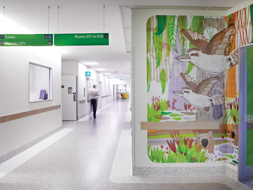 El nuevo Hospital para Niños de Melbourne (Australia), fue un trabajo conjunto de los estudios de arquitectura e interiorismo Bates Smart y Billiard Leece Partnership, con los diseñadores de Büro North, quienes estuvieron a cargo de la señaletica del recinto. Buscando optimizar el tránsito en el hospital, al mismo tiempo que otorgar un ambiente acogedor y ameno para los niños, los diseñadores optaron por colores vívidos, e ilustraciones que semejaran dibujos infantiles. Asimismo, se dio a los níveles y salas el nombre de animales y locaciones típicas del país: el pabellón del Koala o del Delfín, y el piso Copa del árbol son algunos ejemplos. Cada nivel fue adornado con ilustraciones particulares a una temática. El primer piso vendría siendo el subterráneo, ilustrado por animales marinos y de vida bajo tierra, y el último viene a ser el cielo, cuyas ilustraciones son de aves y vida aérea. El hospital se vuelve entonces un espacio lúdico; el recorrerlo se transforma en un viaje por la naturaleza. La estética no es lo único que mejoró: la nueva señalética y designación de espacios redujo el tiempo de tránsito en un 45% e hizo del hospital un lugar más sencillo de recorrer. www.newrch.vic.gov.au