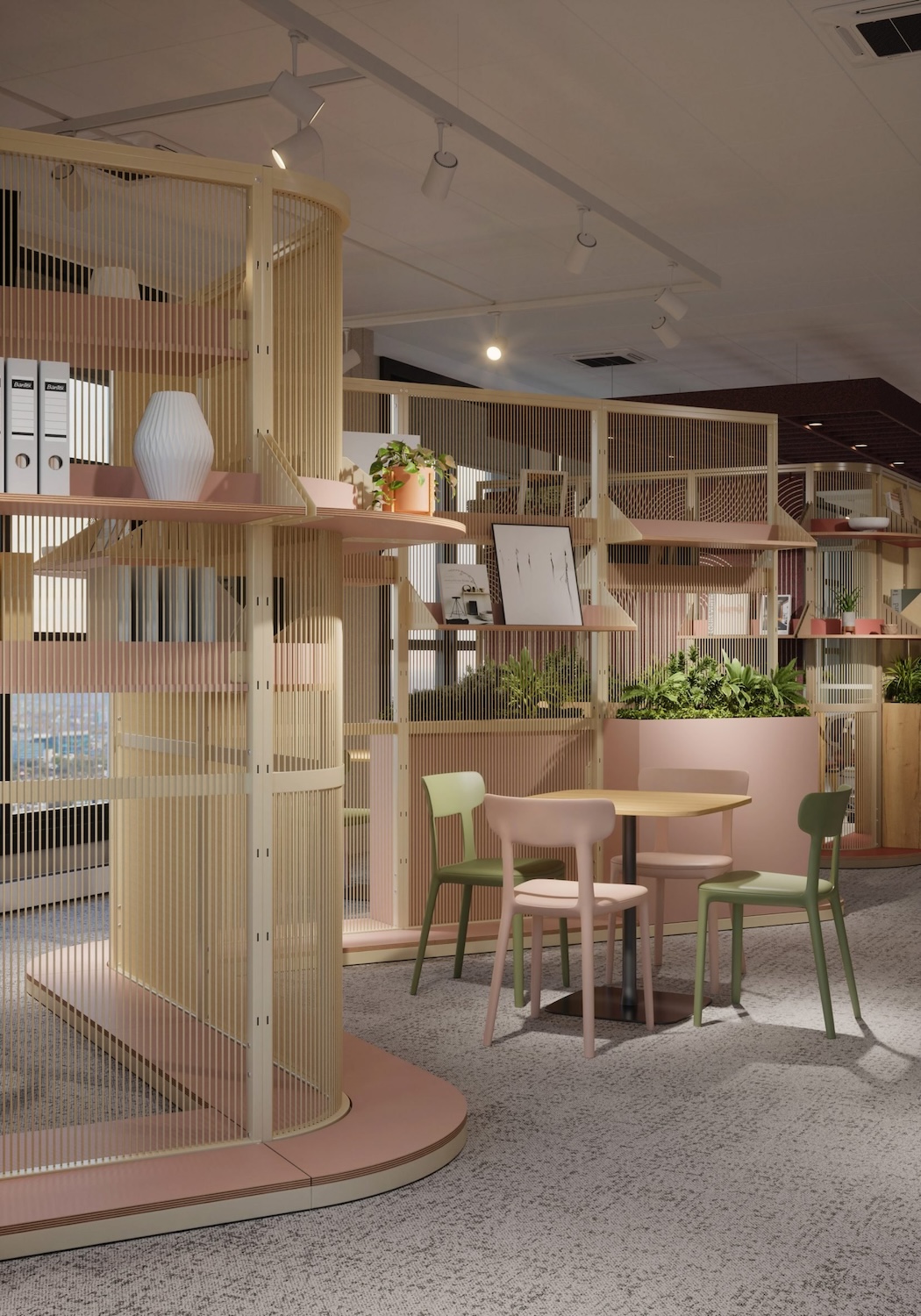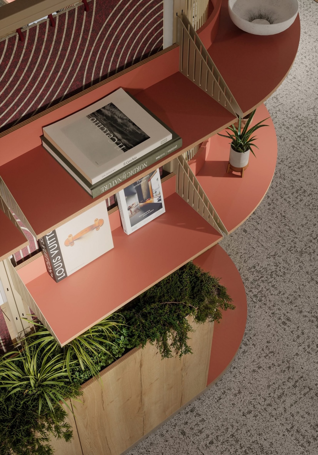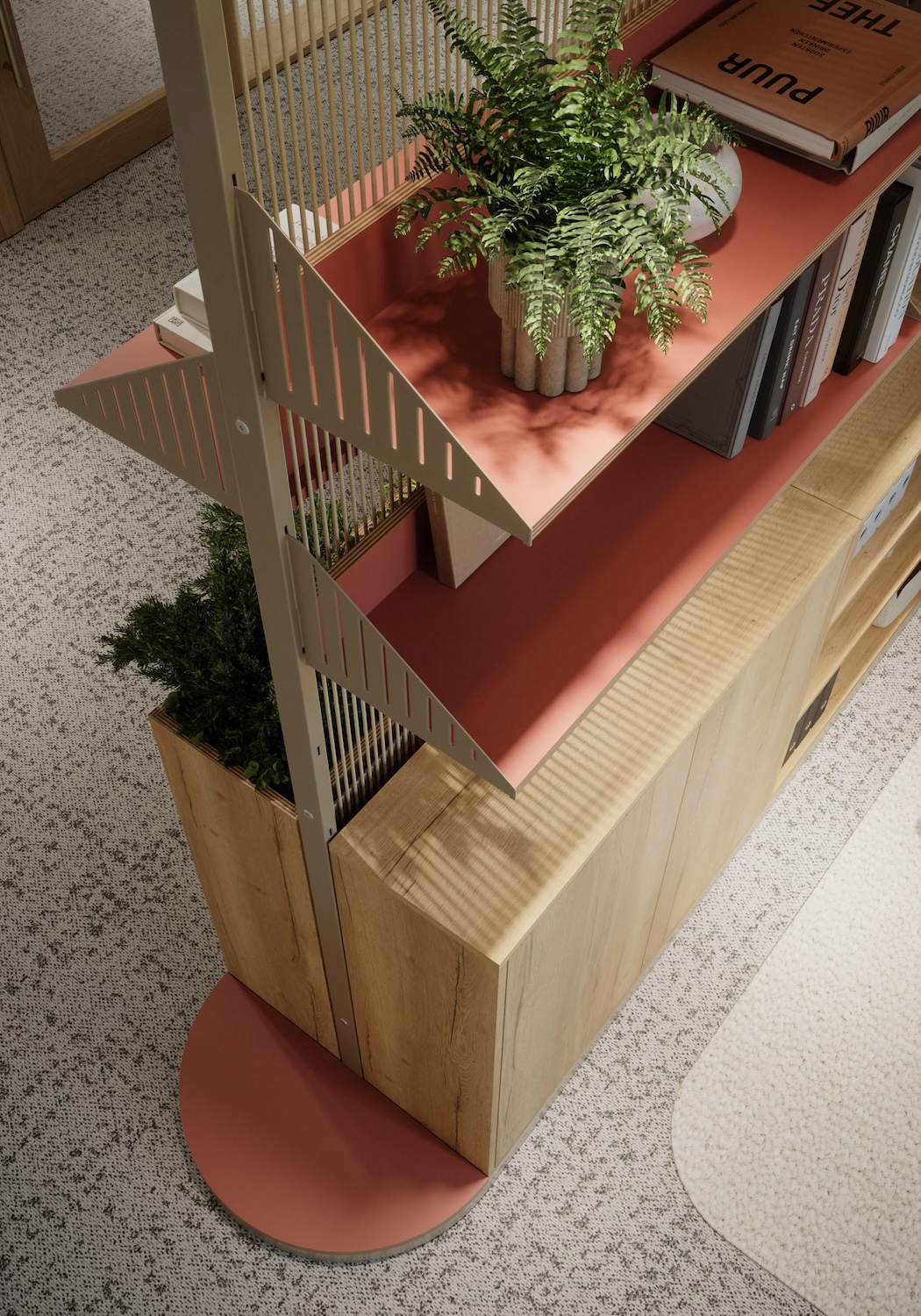 Más que una simple partición, Harp puede personalizarse con estantes, macetas, pizarras, taquillas o mesas, ofreciendo soluciones integrales para el almacenamiento y el trabajo colaborativo. Su equilibrio entre intimidad y apertura la convierte en una opción adaptable y visualmente liviana, ideal para oficinas contemporáneas en constante transformación.