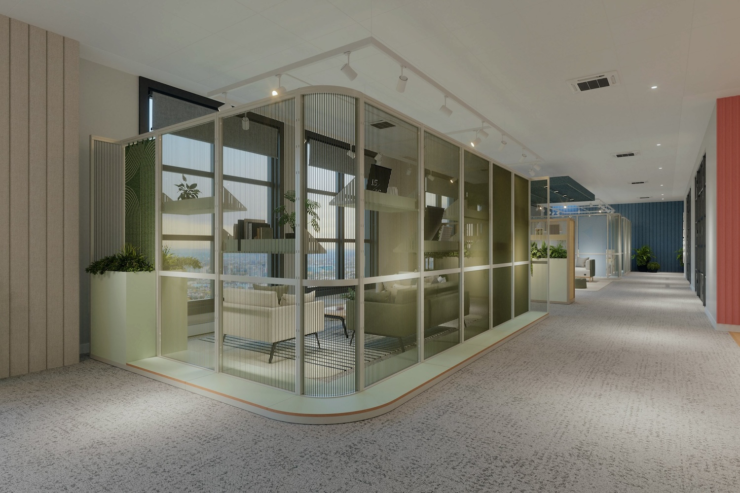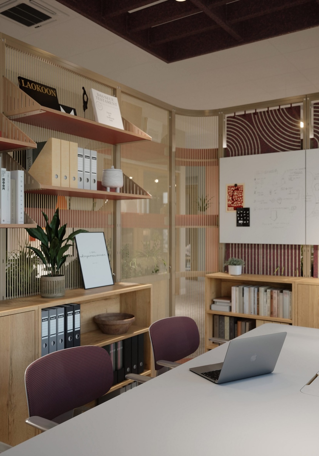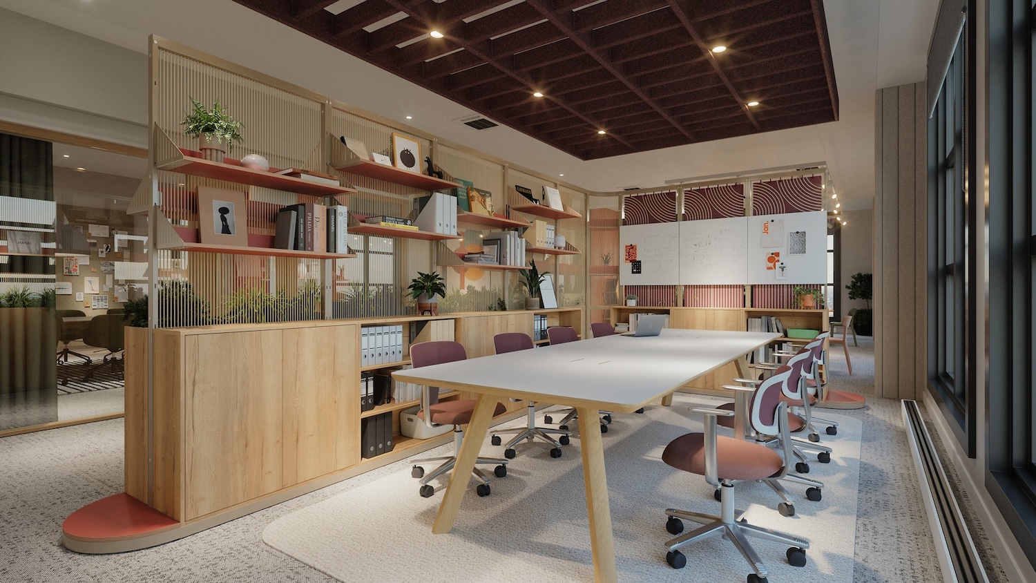 Más que una simple partición, Harp puede personalizarse con estantes, macetas, pizarras, taquillas o mesas, ofreciendo soluciones integrales para el almacenamiento y el trabajo colaborativo. Su equilibrio entre intimidad y apertura la convierte en una opción adaptable y visualmente liviana, ideal para oficinas contemporáneas en constante transformación.