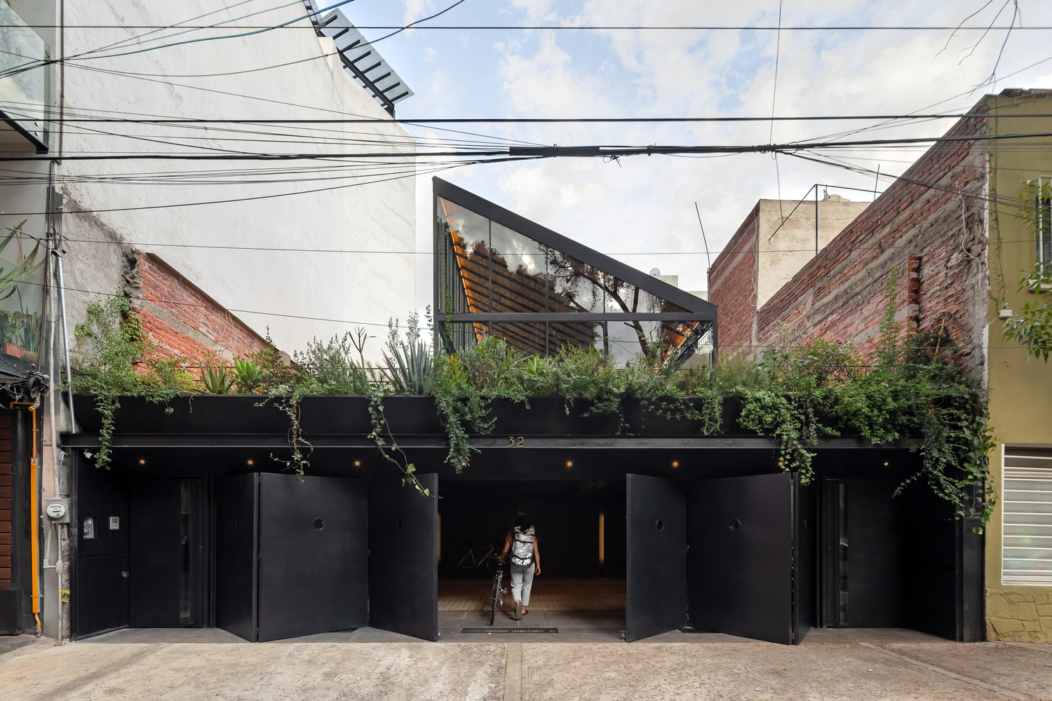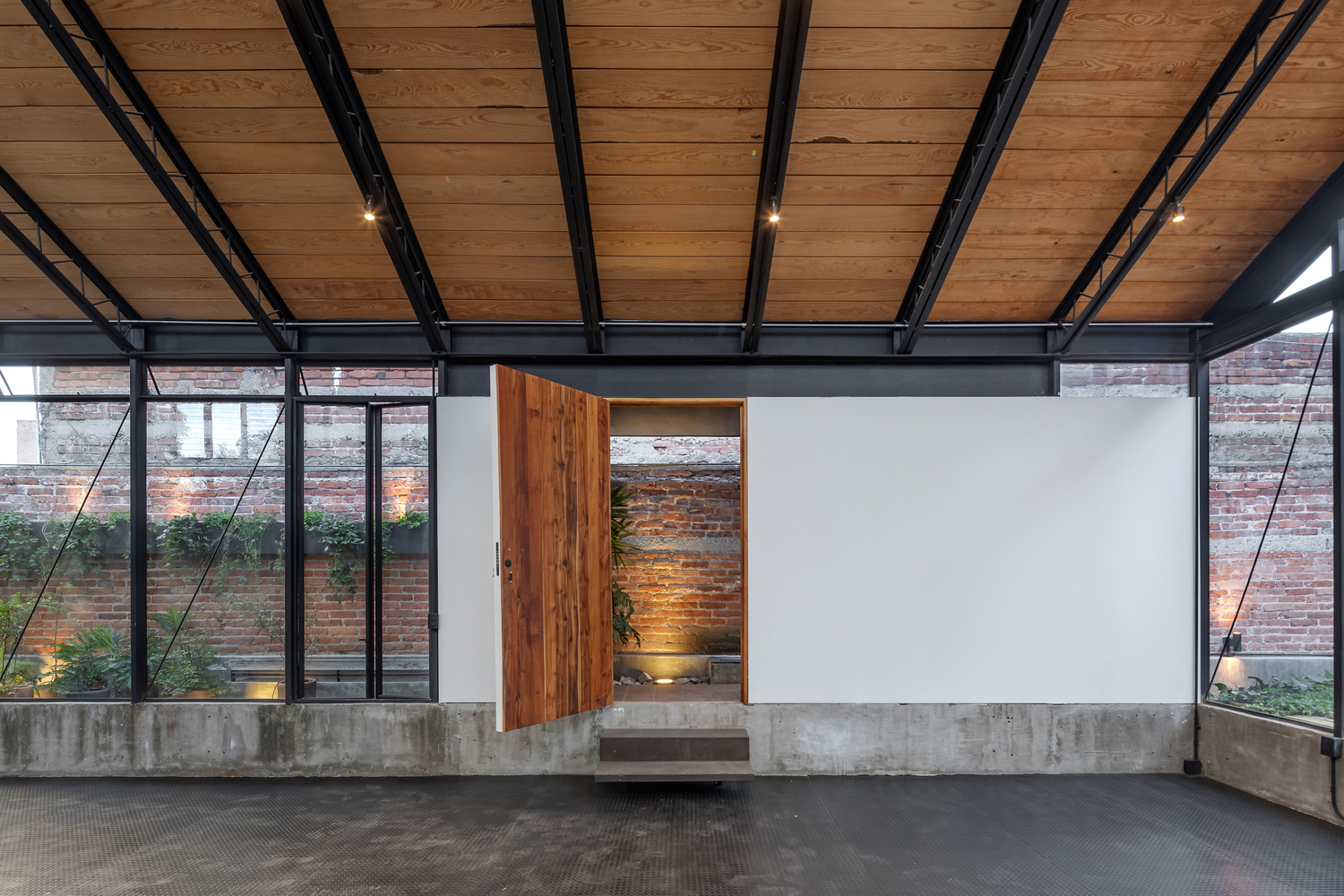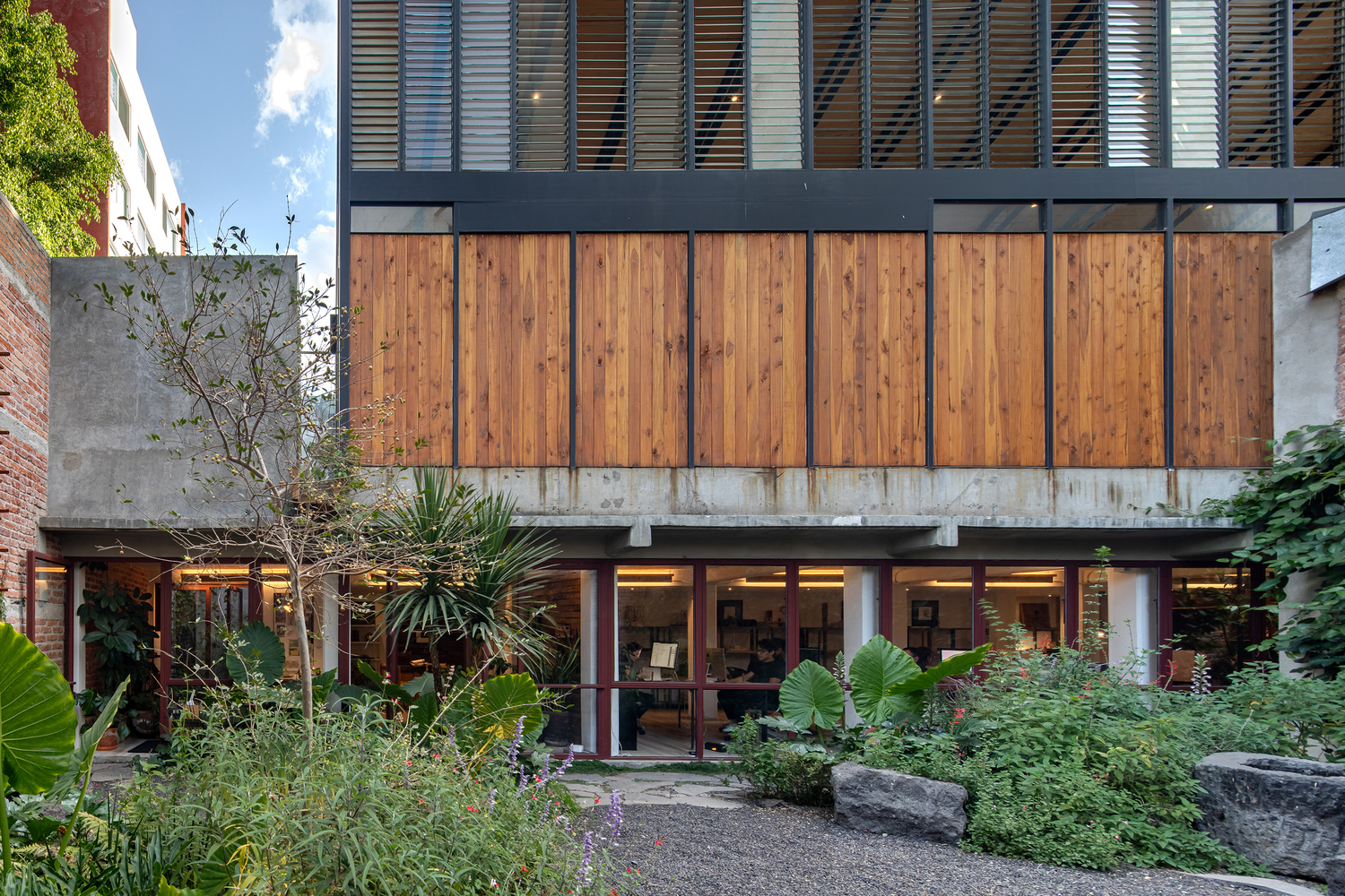 En la colonia Narvarte, este taller de arquitectura se construye a partir de una premisa clara: transformar lo existente como acto coherente con la práctica proyectual. Ubicado en una antigua imprenta en desuso, el proyecto asume el edificio como un organismo a sanar, eliminando elementos nocivos —como la cubierta de asbesto— y recuperando su estructura original para darle una nueva vida. La intervención se basa en estrategias de sustracción y reutilización. Al liberar gran parte del suelo construido, el proyecto recupera cerca de un 40% de superficie permeable, incorporando jardines que reactivan la relación con el entorno y mejoran las condiciones ambientales del espacio. La exposición de materiales originales, como el ladrillo de barro cocido, y la reutilización de elementos existentes refuerzan una atmósfera honesta, donde cada componente conserva su historia y función. Como pieza clave, una galera multiusos ligera y transparente se posa sobre la estructura preexistente, reinterpretando la nave industrial original y abriendo el taller hacia la comunidad. Este espacio, destinado a actividades culturales, establece un puente entre el oficio arquitectónico y el contexto urbano. Más que una simple rehabilitación, el proyecto se convierte en un manifiesto construido sobre reciclaje, adaptación y continuidad, donde el lugar de trabajo refleja —con precisión— la ética y sensibilidad de quienes lo habitan.