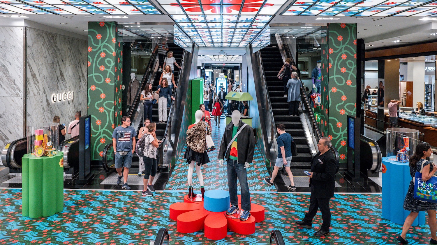 La diseñadora británico-estadounidense Yinka Ilori transformó la fachada y el interior del icónico Bloomingdale’s de Manhattan con Cherish Your Magic, una instalación efímera que combina color, simbolismo y comunidad. Inspirada en los múltiples significados de las flores, la propuesta viste escaparates, muros y mobiliario con gráficos brillantes, enredaderas escultóricas y formas florales tridimensionales.