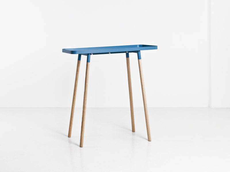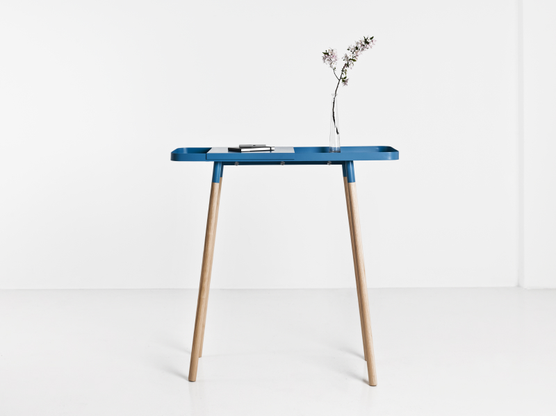 Con una base hecha de madera, Tray Table es exactamente lo que dice su nombre: una bandeja que sirve como mesa. Manteniendo los bordes altos de una bandeja, este diseño cuenta también con una superficie removible que puede servir de escritorio, la que se coloca por sobre los bordes. Asimismo, seis ganchos en la parte inferior permiten colgar carteras, cámaras, o lo que sea necesario, sin interrumpir otro espacio de la casa.