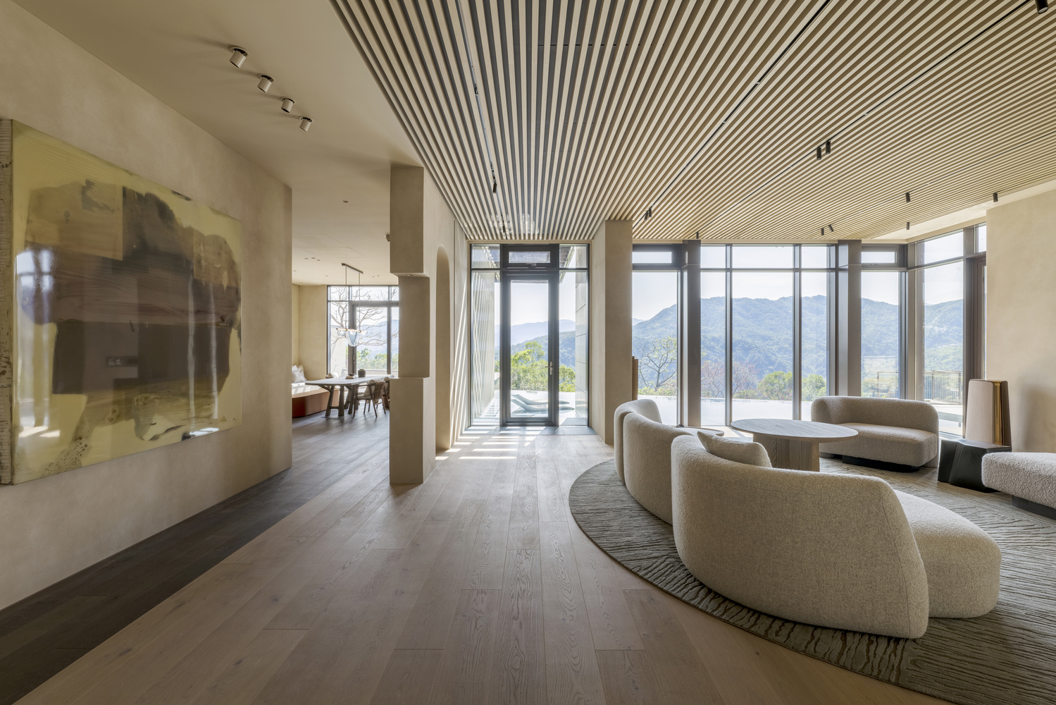 En medio de las montañas de Taiwán, Villa Echo emerge como una arquitectura que escucha y responde. Diseñada por Peny Hsieh Interiors, la residencia nace del deseo de su propietario por reconectar con la naturaleza, y se traza siguiendo el ritmo del terreno, incorporando líneas suaves que fluyen entre arquitectura, interiorismo y paisaje. Cada curva, cada textura y cada ventana amplifican el eco de la tierra, permitiendo que el entorno penetre sutilmente en la vida cotidiana.