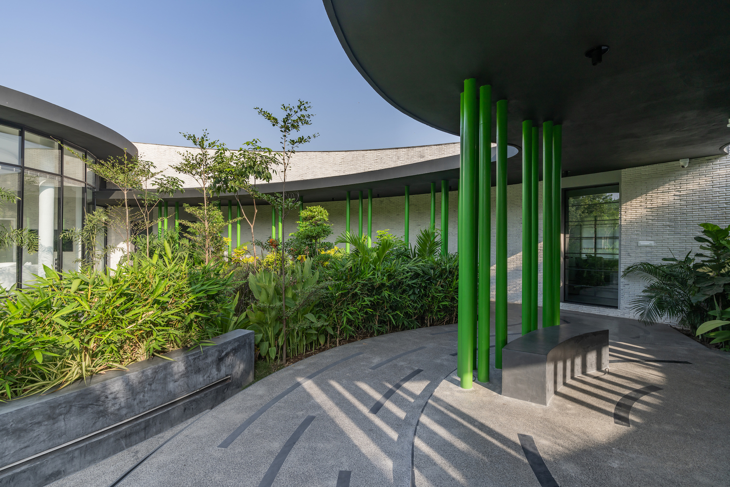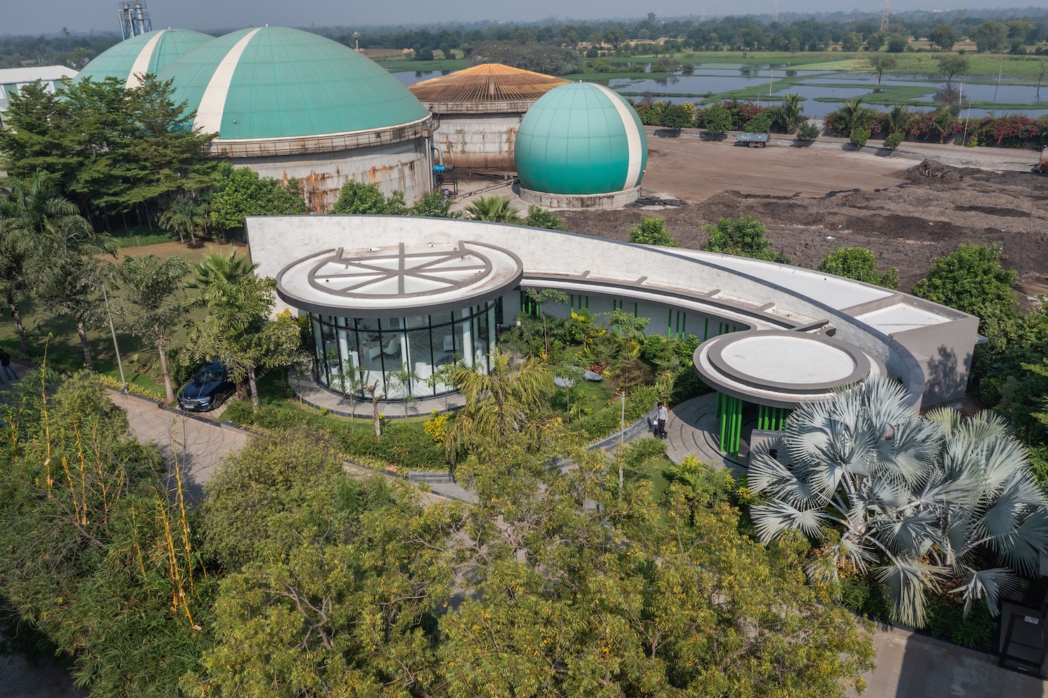 En el corazón de un campus verde, que alberga la planta de biogás más grande de Asia, Whispering Curve Office, diseñado por la firma india Ace Associates, redefine el concepto de espacio de trabajo al fusionarse con el paisaje.