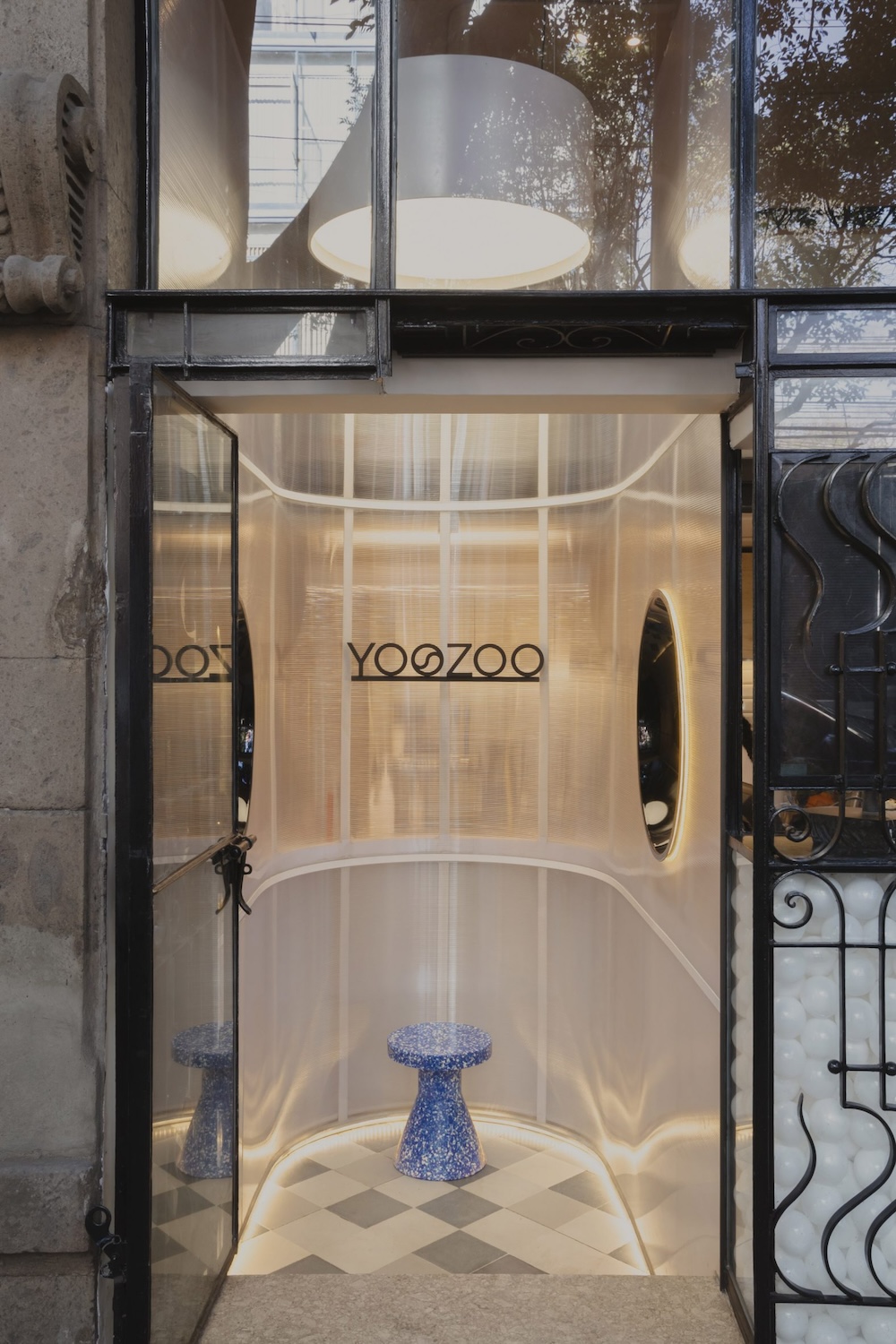 Extendida a lo largo de un edificio colonial en Ciudad de México, la nueva tienda de té boba Yoozoo se caracteriza por su innovadora estrategia de iluminación. Diseñada por la firma hispano-mexicana Worc Studio, este proyecto presenta una llamativa fachada de yeso con adornos de piedra a la vista que emiten un cálido resplandor, atrayendo a los transeúntes. Para solicitar las diferentes variaciones de té boba que Yoozoo ofrece, los clientes deben acercarse a una pequeña área de doble altura situada justo frente a la entrada, creando una experiencia única e inmersiva desde el primer momento.