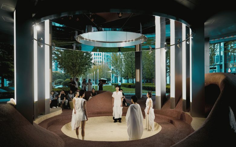 El Pabellón Ola en Hangzhou reinterpreta un espacio residual con un suelo ondulado y techo espejado, creando un microescenario urbano de juego, descanso y conexión sensorial.