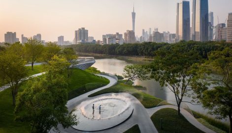 En el corazón del Distrito Central de Negocios de Pazhou, el Parque del Borde Sur redefine...